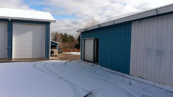 Endless possibilities! Farmers, great storage on 8 acres. Hobby farm, storage facility If you have drive and ambition, this shop can provide great income. Sky's the Limit! This 4600 Sq Ft of Shop and storage, 3 barns together, plus large office, 2x6 construction, 5" well, 1000 gal septic, large Generac. Natural gas for radiant heat in one barn, and hot water baseboard heat in other areas. All spray foam insulated, has been rewired throughout, wired for 220 also, bathroom with a shower, Lift for vehicles, chain fall, paint booth, power washer can run on diesel for heated wash. Garage doors are insulated, Air compressor lines run throughout, Out building 26x28, partial lean too on one end. Other out building 12x16. Crushed asphalt in driveway No maintenance, metal siding and roof. All on 8.1 acres. Zoned Commercial. Come take a look and expand your business here. Can rezone into residential, could remodel into a Barn dominium.