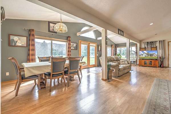 A rare trifecta of excellence: a beautiful, spacious home paired w/ irrigated farmland, all set on Prineville's exclusive private golf course--without the burden of HOAs or CCRs. Enjoy stunning rimrock & golf course views from this custom, single level, 3 bed, 2 bath, 2,083 sq ft home on 4.43 irrigated acres. Built in 1994, this open concept design features vaulted ceilings & a cozy wood stove. The updated kitchen includes tile flooring, wood cased windows, skylights, & newer appliances. A private indoor spa room (hot tub included) offers relaxation or could easily serve as a 4th bedroom, office, or flex space. Recent updates include a newer heat pump/AC, 50 year composite roof & a private well. 26'x72' greenhouse, storage shed/barn, fenced animal areas, & 4 acres of water rights w/ irrigation setup. Attached triple car garage w/ extended bay plus 20'x30' shop w/ 220 power & extra single garage area. Peaceful setting, modern comforts, & no CC&Rs or HOA fees.