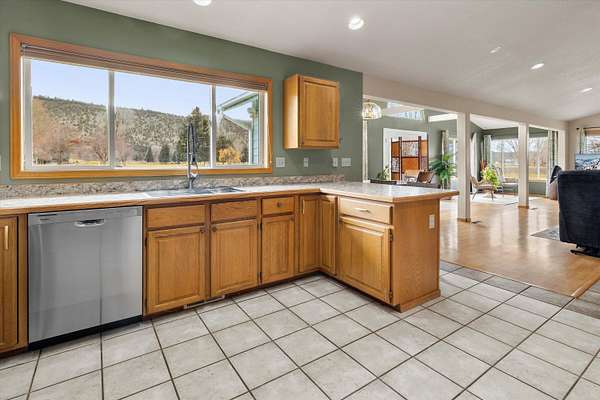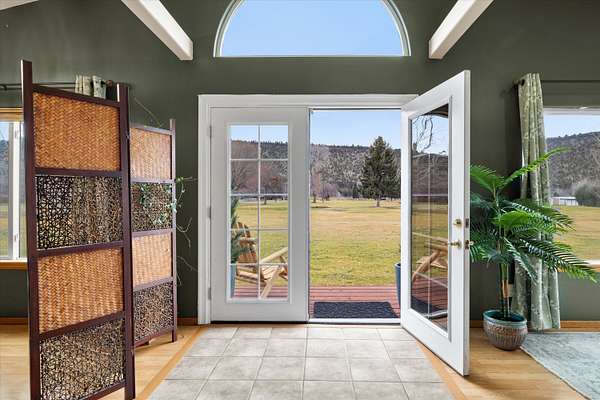 A rare trifecta of excellence: a beautiful, spacious home paired w/ irrigated farmland/horse property, all set on Prineville's exclusive private golf course--without the burden of HOAs or CCRs. Enjoy stunning rimrock & golf course views from this custom, single level, 3 bed, 2 bath, 2,083 sq ft home on 4.43 irrigated acres. Built in 1994, this open concept design features vaulted ceilings & a cozy wood stove. The updated kitchen includes tile flooring, wood cased windows, skylights, & newer appliances. A private indoor spa room (hot tub included) offers relaxation or could easily serve as a 4th bedroom, office, or flex space. Recent updates include a newer heat pump/AC, 50 year composition roof & a 200 gpm private well! 26'x72' greenhouse, storage shed/barn, fenced animal areas, & 4 acres of water rights w/ irrigation setup. Attached triple car garage w/ extended bay plus 20'x30' shop w/ 220 power & extra single garage area. Peaceful setting, modern comforts, & no CC&Rs or HOA fees.