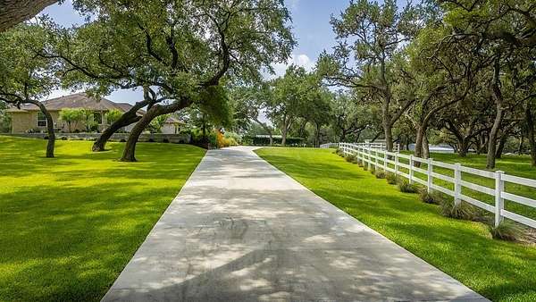 As you enter the custom gate, off highway 87, you will immediately notice the impressive white vinyl fence that lines the driveway; but, the exceptional grove of Live Oak Trees, in the front pasture, are the stars of the show that welcome you up the ? mile drive to the spectacular main home.