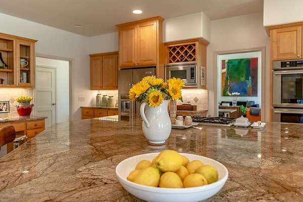 The interior yard is also stunning. The lush green grass, tasteful landscaping, mature trees, and gorgeous countryside views all contribute to the park-like feel you get when in the yard.