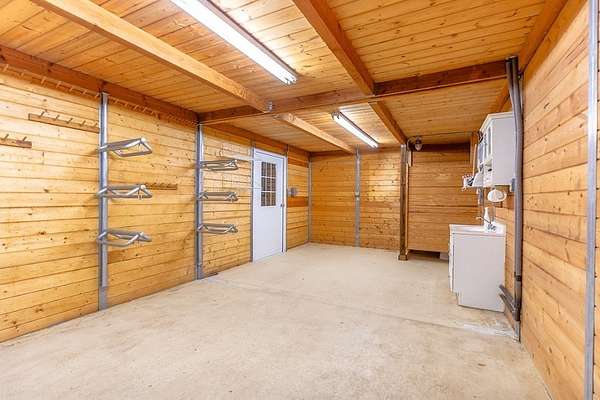 Next, there is a 720 Sq. ft. equipment shed, and a 4,400 sq. ft. Barn Master 5 stall horse barn that is complemented by a 150? x 100? white vinyl fence and two turnout pens, with loafing sheds.