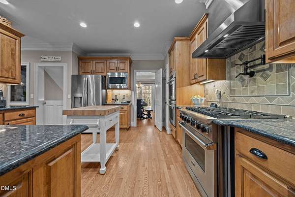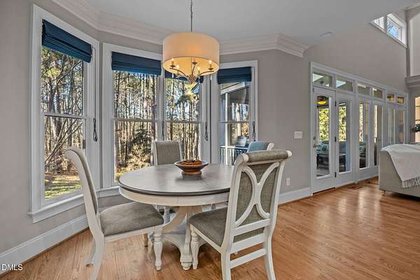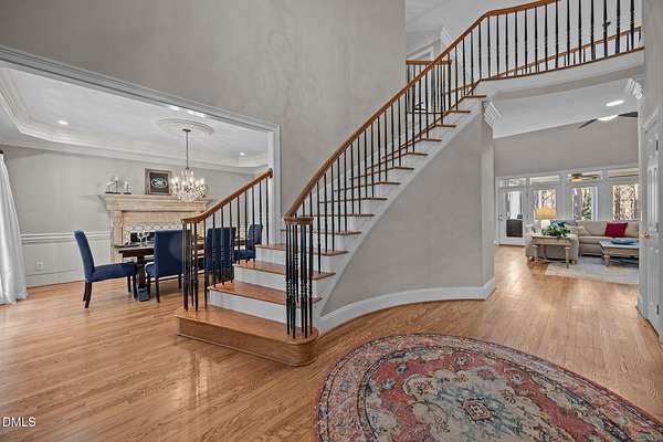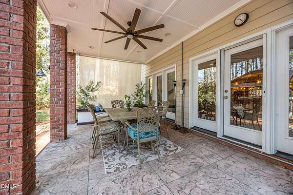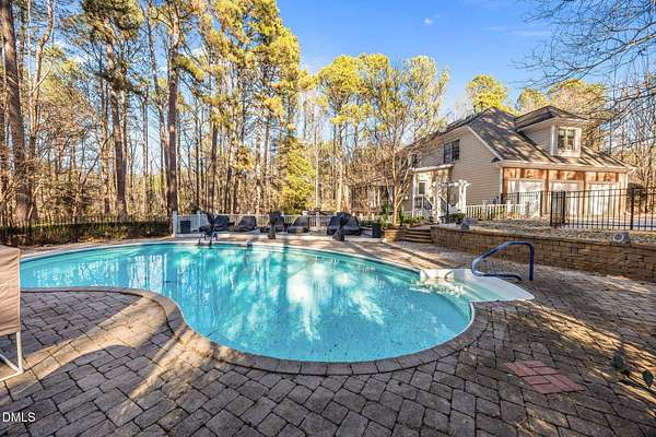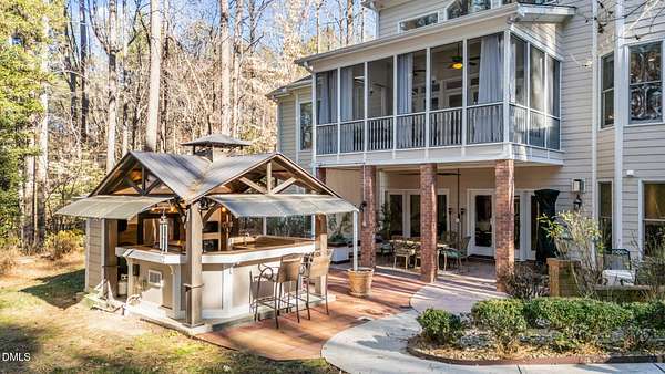 Discreetly nestled on a private 2.49-acre homesite within the desirable gated community of La Ventana, 7209 Mira Mar Place offers a rare blend of refined elegance, generous scale, and resort-style living in Wake Forest. Framed by mature trees and lush landscaping, this custom residence delivers a sense of privacy and tranquility rarely found so close to everyday conveniences. The home features 4 bedrooms, 4.5 bathrooms, and 4,111 square feet above ground, showcasing thoughtfully curated spaces designed for both sophisticated entertaining and comfortable daily living. Expansive windows throughout invite natural light and provide peaceful views of the surrounding landscape, while the flowing floor plan allows for effortless movement between formal and casual living areas. The finished walkout basement adds an additional 1,585 square feet and elevates the home's lifestyle appeal. This level includes a custom bar, a dedicated fitness room, and an entertainment area with a billiards table, creating a private retreat ideal for hosting or unwinding. Direct access to the outdoor living area leads to a covered patio with an outdoor kitchen and sitting area, offering seamless indoor-outdoor enjoyment. The backyard is a true sanctuary, highlighted by a resort-style in-ground pool, expansive paver patios, and a charming gazebo-an inviting setting for both intimate gatherings and larger celebrations. Additional outdoor spaces, including an elevated deck and screened porch, provide multiple vantage points to enjoy the serene wooded backdrop. Conveniently positioned near shopping, dining, and commuter routes, this exceptional property offers an unparalleled combination of privacy, luxury, and livability. This is a home to be experienced-schedule a private showing and discover the elevated lifestyle awaiting at 7209 Mira Mar Place.