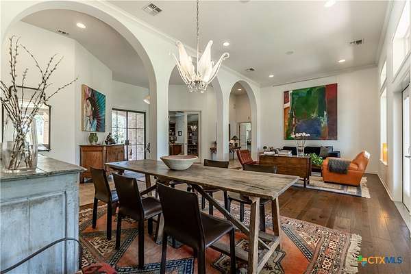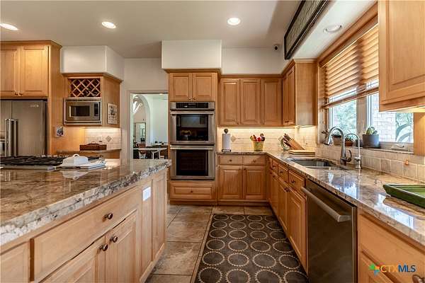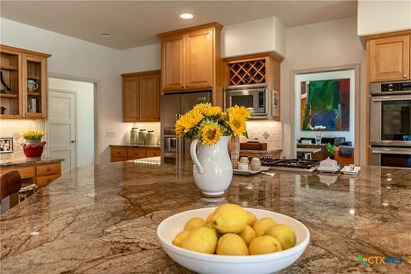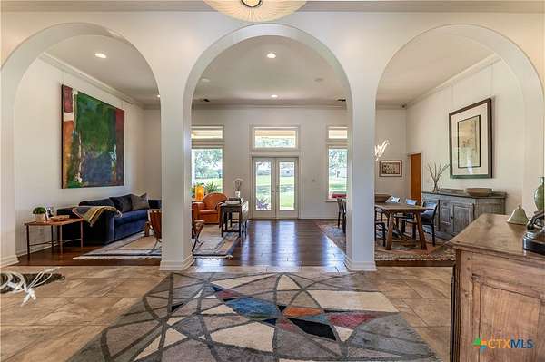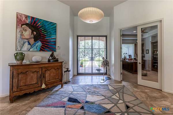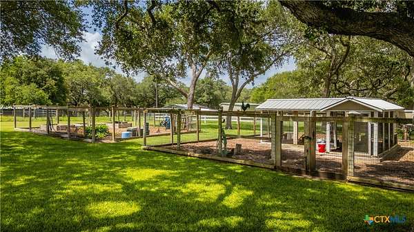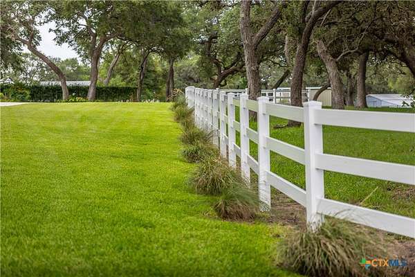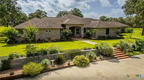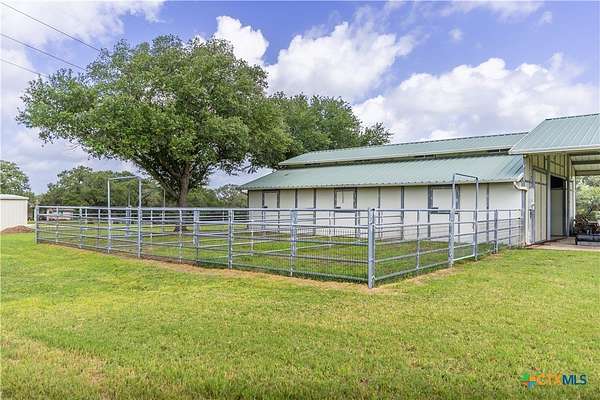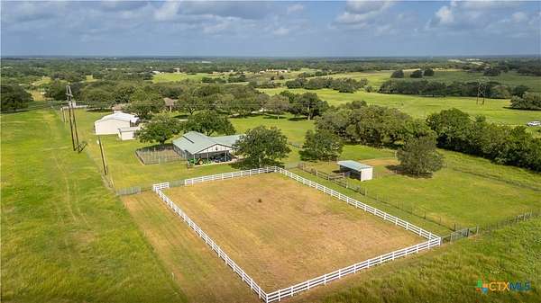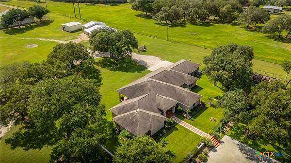 Welcome to 6 Rock Ranch, a 16.96+/- acre private sanctuary between Cuero and Victoria where every detail whispers sophistication and every corner offers purposeful design. From the moment you pass through the custom gated entrance, a winding drive framed by towering Live Oaks and crisp white fencing sets the scene for refined country elegance. At the heart of this estate stands a 4,595+/- sq ft custom Steve Klein-built residence with 4BR/3BA/2HB-a home where timeless architecture meets modern luxury. Walking up, you'll be immediately impressed by the stunning Saltillo tile and meticulous landscaping. Step inside to soaring ceilings, rich wood and tile floors, and sun-drenched living spaces that effortlessly balance grandeur with comfort. The chef's kitchen is a masterpiece of form and function, with granite counters, custom cabinetry, and expansive prep and gathering areas that flow seamlessly into elegant dining and living rooms-perfect for family interaction, intimate evenings, and memorable entertaining. Retreat to the private primary suite, a sanctuary of tranquility featuring a spa-inspired bath and spacious walk-in closets, designed for relaxation and rejuvenation. Don't forget the expansive office and hidden room! Beyond the home, the ranch unfolds into a showcase of premium improvements: a 3,040+/- sq ft climate-controlled shop with high-end finishes, ideal for an executive workspace, showroom, or hobbyist's dream; and an impressive 4,400+/- sq ft Barn Master 5-stall horse barn with turnout pens, loafing sheds, and meticulous fencing for both equestrian excellence and functional convenience. Additional features include a Generac generator, equipment shed, chicken coops, and professionally maintained grounds that enhance every vista and create a true sense of arrival. Combining accessibility with serene privacy, 6 Rock Ranch delivers an unparalleled blend of luxury, lifestyle, and legacy-crafted for those who refuse to compromise on quality and prestige.