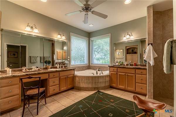 - Bookcases, Built In Features, Carbon Monoxide Detector, Ceiling Fans, Chandelier, Crown Molding, Dining Area, Double Vanity, Entrance Foyer, Game Room, Garden Tub Roman Tub, High Ceilings, Home Office, Main Level Primary, Multiple Dining Areas, Multiple Living Areas, Pantry, Primary Downstairs, Pull Down Attic Stairs, Recessed Lighting, Separate Formal Dining Room