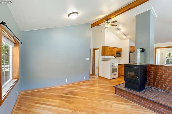 Welcome to 721 Cole Rd in beautiful Oakland, OR-a rare opportunity to own a charming multi-family property on 9.78 acres of serene, usable land. This creek frontage property includes water irrigation rights from Calapooya Creek and a peaceful pond with small mouth bass, creating a tranquil setting. The main home offers 737 sqft of cozy living space with 2 bedrooms and 1 bathroom. Inside, warm wood floors and vaulted ceilings create an inviting atmosphere, while a brand-new pellet stove adds warmth and charm. Enjoy the covered porch with cobblestone accents or relax on the back deck, ideal for morning coffee or unwinding. The kitchen is fully equipped with modern appliances, including a fridge, range, dishwasher, microwave, and pantry, plus a convenient laundry area with a washer/dryer combo. In addition, the property features a delightful second home at 695 Cole Rd-a whimsical 1-bed, 1-bath cottage with board and batten siding and a wrap-around concrete porch. Inside, a cozy new wood stove and beautiful wood accents, including tongue and groove ceilings and log-style details, add rustic character. The kitchen includes a fridge, range, and portable dishwasher, with laundry hookups and a finished attic space enhancing functionality. Beyond the homes, this property is a gardener's paradise and ideal for hobby farmers. It includes a large 2 story barn, 3 medium and 2 commercial-size hoop houses, and a greenhouse-perfect for year-round growing. A 90x30 garden with berries and vegetables is supported by an efficient drip irrigation system. There's ample space for RV parking and three gated entrances for easy access and privacy. Plus, enjoy reliable DFN fiber internet in this peaceful country setting. This unique property combines comfortable living with abundant outdoor amenities, offering versatility for multi-generational living, hobby farming, or simply enjoying a serene lifestyle surrounded by nature.