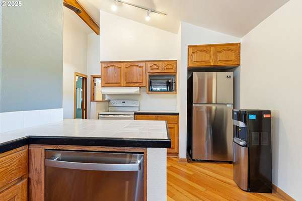 - Dishwasher, Free Standing Range, Free Standing Refrigerator, Microwave, Pantry, Range Hood