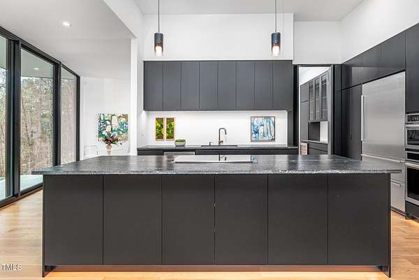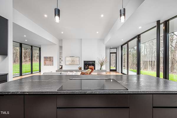 This gem is back on market due to buyer circumstances shifting! Appraisal and inspection were just fine - available upon request. 721 Jones Ferry Road is a one-of-a-kind modern masterpiece, designed by award-winning local architect Philip Szostak. This NC modernist featured home is on 4 acres, 5 minutes from UNC & every inch boasts innovative design. High ceilings, skylights, and ribbon windows allow natural light and generous views of University Lake. Sleek modernism retains functionality with hidden pantries and bookcase doors, refrigerated and charging drawers, secret drawers in nearly every room, a bonus hidden laundry room, and an art-screened jewelry rack. Enjoy the height of luxury with heated floors, a recessed airbath tub & heated back, hot tool bins, voice automated luxor shades, illuminated mirrors, and smart audio. Nearly 600square feet of pre-plumbed and heated space exist downstairs to make your own!
