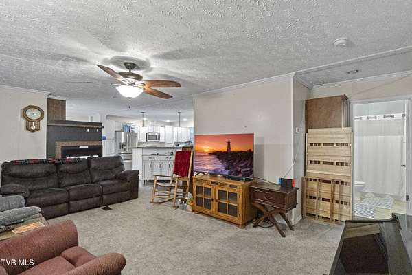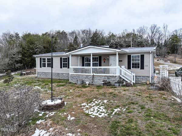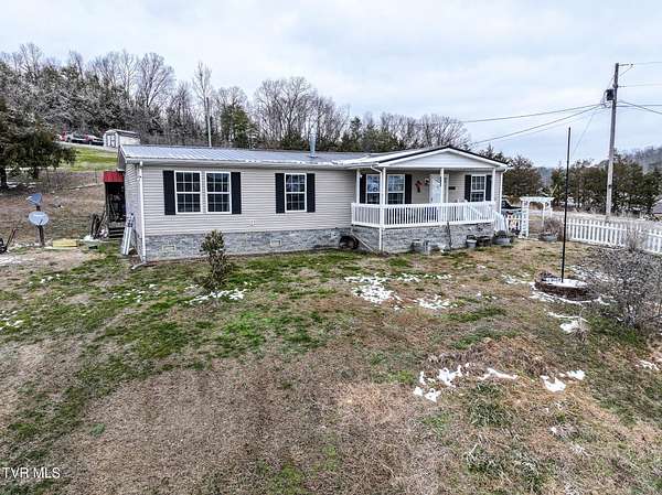 Nestled on 2.84 peaceful acres in Midway, TN, this beautifully updated 3-bedroom, 2-bath doublewide offers the perfect blend of space, privacy, and country charm. Step inside to find a bright, open living area filled with natural light and centered around a cozy gas fireplace, ideal for relaxing evenings at home. The kitchen has been tastefully refreshed with all-new appliances, a new farmhouse sink, and plenty of cabinet and counter space for everyday living or entertaining. Throughout most of the home, you'll find new flooring that adds a fresh, modern touch. The primary suite features a private bath with a new double vanity, while two additional bedrooms provide flexibility for family, guests, or a home office. A new heat pump keeps the home comfortable year-round, and the washer and dryer are included for added convenience. Step outside to enjoy the best of East Tennessee living. The property includes a fully fenced one-acre section, perfect for pets or livestock, and a year-round creek that adds to the peaceful setting. Multiple fruit trees and berry bushes dot the landscape, offering seasonal beauty and homegrown harvests. A new 10x20 outbuilding with electricity provides excellent storage or workshop space, and the new deck is perfect for outdoor gatherings. The septic tank was pumped last year, and high-speed fiber internet is already connected. Lawn equipment is negotiable. Conveniently located yet offering a quiet, rural feel, this property delivers affordability, acreage, and lifestyle all in one inviting package.