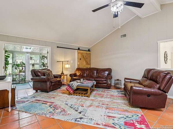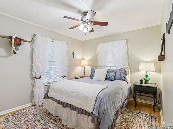 Five unrestricted acres just minutes from Fredericksburg featuring a comfortable 3-bedroom, 2-bathroom home surrounded by the beauty of the Hill Country. This property offers space, flexibility, and freedom to enjoy country living your way. Inside, the home features a spacious living area with a charming brick wood-burning fireplace and skylights that bring in natural light. The kitchen, complete with a farmhouse sink, is warm and welcoming, while the updated primary bathroom adds a modern touch. A large laundry and storage area provides extra convenience. The primary bedroom includes direct access to the outdoors and the fully fenced yard. The sunroom adds additional living space and would make a great home office, craft room, or quiet place to unwind. Outside, a full-length front porch overlooks mature oak trees with nice Hill Country views and plenty of room to spread out. The property also includes two separate outbuildings-one on a concrete slab with power and another located on the opposite side of the property. With room for animals, gardening, or simply enjoying country living, this property offers privacy and flexibility while still being close to Fredericksburg.