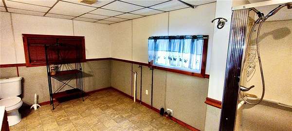 Escape to the country and enjoy peaceful living on approx 2.15 acres of mostly level, gently rolling land surrounded by nature's beauty. This cozy 3 +/- bed home offers comfortable living spaces with natural light. The spacious living room opens to an oversized family room -- ideal for cozy evenings, entertaining or relaxing with a view of the open land. The updated, oversized eat-in kitchen has plenty of room for meal prep and family gathering, complete with stove, refrigerator, dishwasher, and microwave. A convenient first-floor laundry and full bath add everyday practicality. A charming chalet-style stairway in the living room leads to a finished upper-level space that offers versatility -- perfect for a bedroom, office, or creative retreat. There is a large detached garage with abundant space for vehicles, equipment, or a workshop. The acreage is mostly open and level, offering a blend of sun and shade for outdoor living, gardening, or enjoying the quiet privacy.
