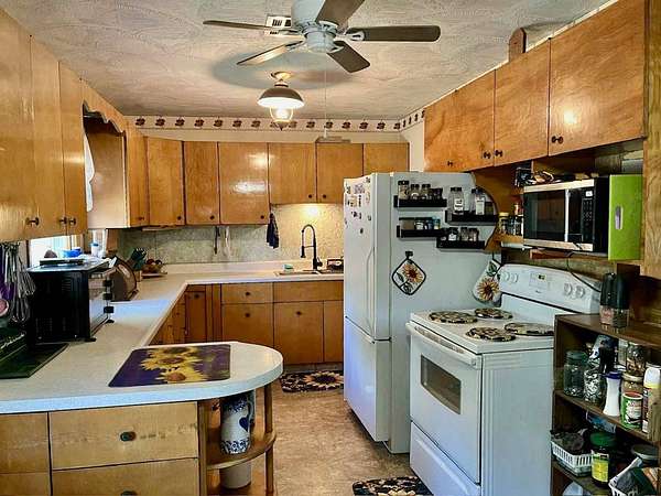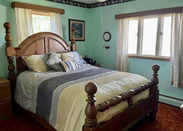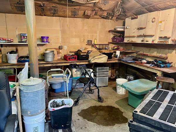 Ranch-style home built in 1962 on 9 acres is conveniently located on a paved road close to town and offers the perfect blend of rural tranquility and easy access to town amenities! This 1300 sq. ft. home features a large living room, built-in cabinets, efficient kitchen, 1+ bedrooms, 1 bath, and laundry room on the main floor and another 2 non-conforming bedrooms, bath, and living area in the basement. Outside, the farm offers a multitude of buildings - a double car garage with shop area that includes an oil pit, beam for lifting engines, metal bench, grinder, and sink for cleaning motor parts; a workshop; a brooder house with wood floor; tractor sheds; hay barn; smaller barn with automatic water; and storage for a travel trailer! With the 9 acres, there is brome and alfalfa to put up for hay. With the rest of the acreage, the possibilities are endless! Whether you envision a lush garden, space for animals, or simply a peaceful outdoor sanctuary, this property offers a canvas for your dreams!