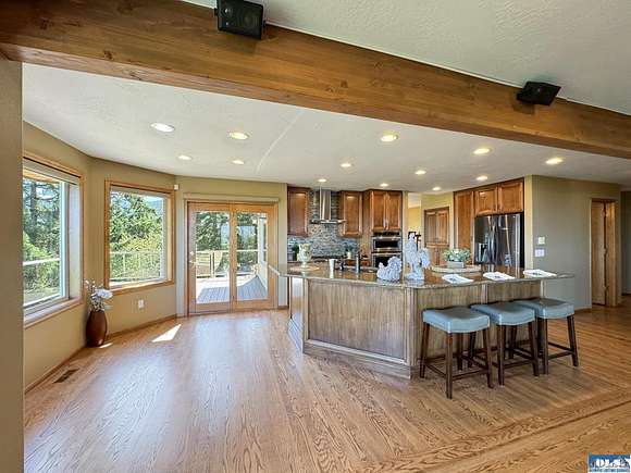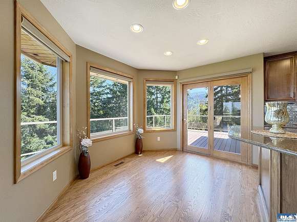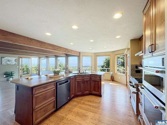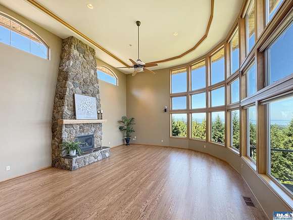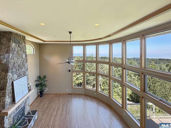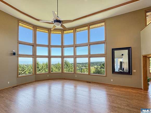Welcome to this breathtaking 3-bedroom, 2.5-bathroom home nestled at the top of Sunset Heights Drive, offering sweeping panoramic views of Black Diamond, Mt. Baker, the Straits of Juan de Fuca, Port Angeles Harbor, city lights, and the Klahanne Ridge. Wildlife sightings, including "Phil the Pheasant," are a regular occurrence, and year-round sunrises greet you each day. This two-story, 3,720 square-foot residence boasts exceptional design and luxurious finishes. With a fully insulated, 624 square-foot two-car garage, this home combines elegance and practicality. Enter the upstairs primary bedroom through French doors and be captivated by awe-inspiring views. The primary suite features a private balcony overlooking the living room, double vanities with granite countertops, a jetted tub with a scenic view, a separate shower, and two spacious walk-in closets. The second bedroom and laundry room are also located on this level for added convenience. Enjoy two new composite decks, perfect for soaking in the surrounding beauty. The wraparound balcony deck extends from the kitchen's entry to the living room, offering ample sitting areas, see-through glass railings, outdoor speakers, and a propane connection for easy grilling. The 1,800 square-foot gathering deck, accessible from the garage, is prepped for a hot tub and ideal for entertaining. Designed to maximize the stunning views, the kitchen features a Wolf gas range and oven, an oversized island with granite countertops, and seating for five. Ample cabinetry throughout the kitchen and dining room provides abundant storage, while the open-beam ceiling enhances the home's inviting ambiance. The dining area's built-in cabinetry and serving counter make entertaining effortless. The elegant home office offers uninterrupted views of the mountains and water, complete with floor-to-ceiling bookshelves, a cozy window seat with storage, and a spacious desk. The grand entryway is adorned with a two-story foyer, brick front steps, a rustic chandelier, and a classic stairway. Off the entry is the family room, featuring a mountain-view window, gas fireplace, and in-home audio system. The living room is a showstopper, with its 25-foot coffered ceiling, floor-to-ceiling stone fireplace, and expansive north-facing windows that flood the room with light. Arched mullion windows to the west and automatic Hunter Douglas blinds add a refined touch, while the installed home theatre system completes the room's luxurious feel. Beneath the main floor lies 1,000 square feet of unfinished space, ready to become your dream workshop, additional bedrooms, home gym, or art studio. The attached two-car garage is level with the main floor for easy access and is fully finished, insulated, and heated. A mudroom with a sink and storage connects the garage to the kitchen. This home is equipped with a 500-gallon propane tank for the kitchen stove and fireplaces, a direct-connected home generator, and a full security system with cameras. Additional amenities include a central vacuum system, craftsman-quality oak flooring, ornate wood railings, solid wood cabinets, and detailed trim throughout. The Sunset Heights neighborhood offers peace and serenity, coupled with a vibrant community atmosphere that hosts frequent social gatherings. This magnificent property is more than just a home--it's a lifestyle. Don't miss the opportunity to own this remarkable view home at Sunset Heights. Schedule a tour today!