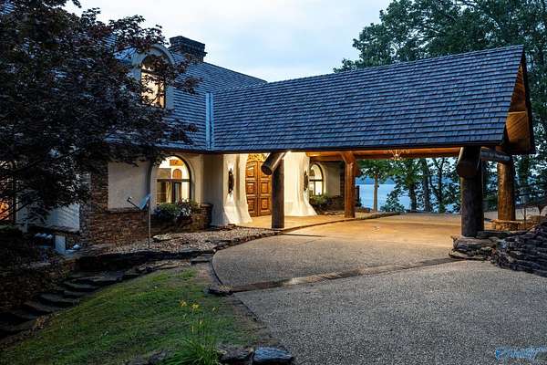 Experience true luxury where privacy, recreation, convenience, and stunning views come together in one remarkable property. This iconic estate in Muscle Shoals offers a once-in-a-lifetime opportunity. Located just minutes from world-class golfing and award-winning fishing, this waterfront home sits on 7.5 acres, only 2 hours from Nashville. A gated entry leads you down a winding road to the sound of waterfalls under the Porte Cochere. From the moment you arrive, you'll be captivated by the breathtaking beauty around every corner. Outside, enjoy multiple levels of balconies and two boathouses with fuel on a private slough. Years in the making, this home is a true masterpiece.