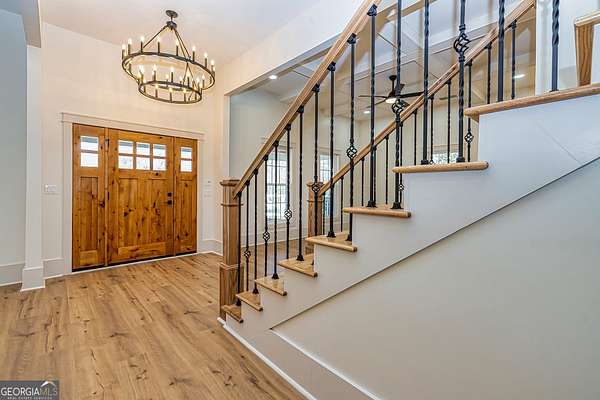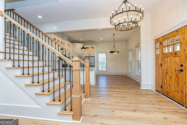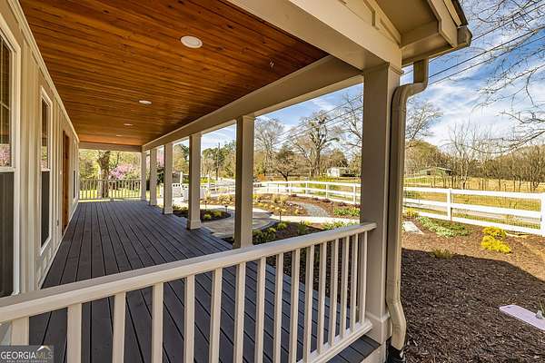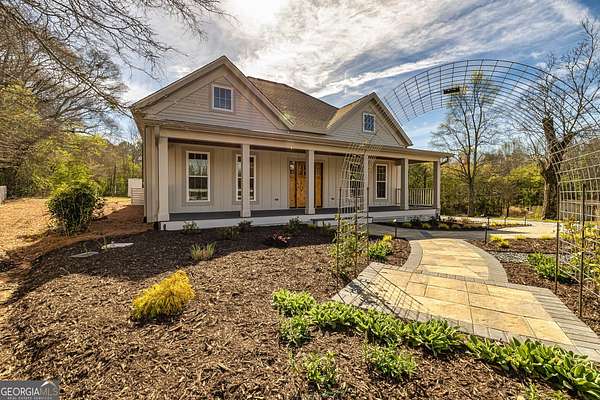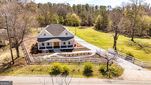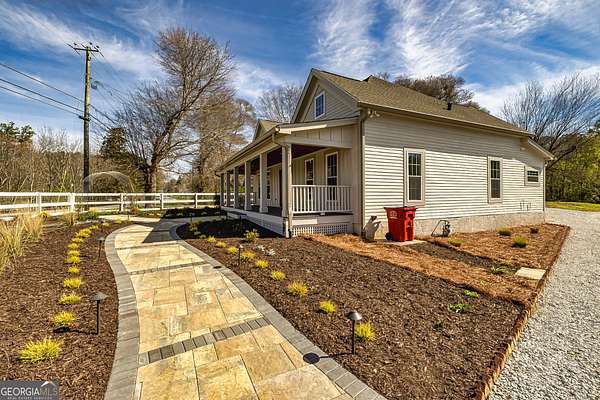 This stunning historic farmhouse has been completely renovated, preserving its timeless charm while offering modern comforts. Nestled on 7.8 fenced and gated acres, this property provides both privacy and potential for additional home sites. Thoughtfully designed landscape lighting enhances the beauty of the home and its upgraded landscaping, creating a warm and inviting ambiance. Step onto the expansive front porch and into a beautifully updated interior featuring an open-concept floor plan with a spacious kitchen and breakfast area-perfect for entertaining. The primary suite on the main level boasts a luxurious upgraded bath and a generous walk-in closet. Two additional bedrooms share a beautifully renovated full bath in the hallway. With top-to-bottom updates, this home seamlessly blends historic character with modern convenience, making it feel like new. Don't miss this rare opportunity to own a piece of history with endless possibilities!