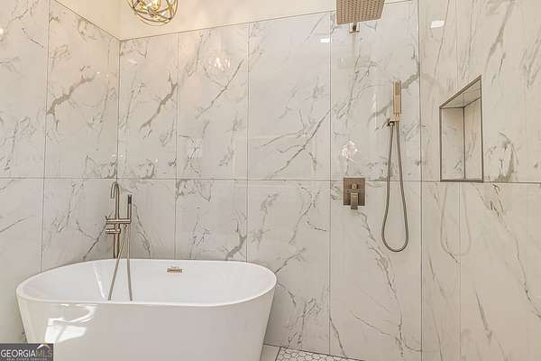 - Double Vanity, High Ceilings, Master On Main Level, Separate Shower, Soaking Tub, Tile Bath, Walk-In Closet(s)