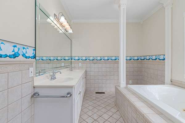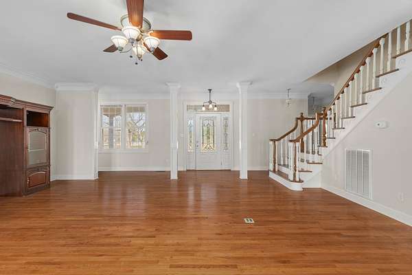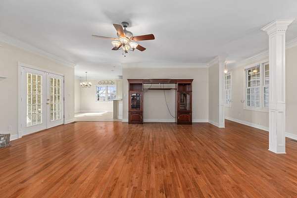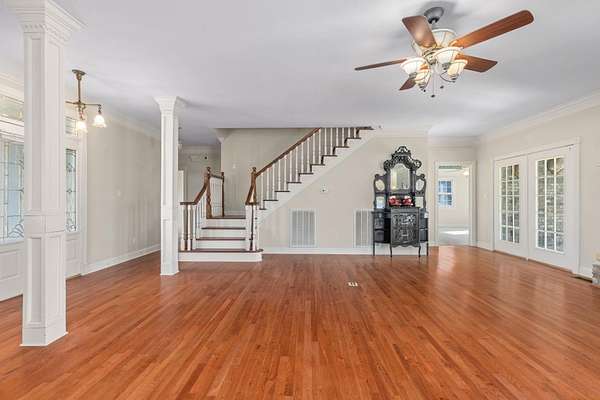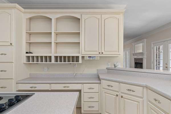 - Breakfast Bar, Built-In Features, Ceiling-High, Chandelier, Crown Molding, Double Closets, Double Vanity, Entrance Foyer, Open Floorplan, Pantry (interiorfeatures), Primary Bedroom Main, Solid Surface Counters, Speciality Ceiling, Storage (interior), Walk-In Closet(s)