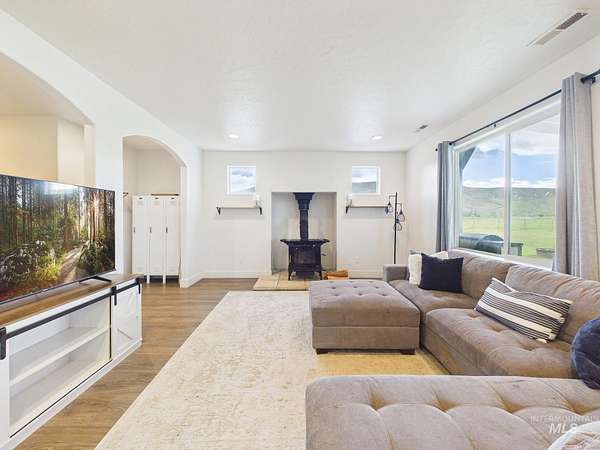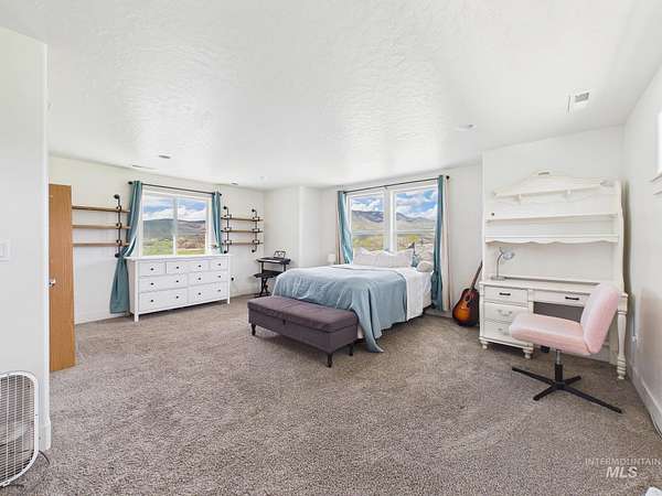 Spacious country living meets endless potential on 25 irrigated acres with breathtaking 365-degree views-including stunning sights of Bogus Basin and The Butte. This versatile property features a 4-bedroom home plus a den that could easily serve as a 5th bedroom, along with 3.5 bathrooms designed for comfort and convenience. Inside, you'll find a warm and inviting living space anchored by a cozy fireplace-perfect for relaxing after a day outdoors. The property is fully equipped for rural living, offering ample space for livestock, cattle, horses, and 4H projects. Enjoy the added benefit of RV parking with full hookups, making it ideal for guests or extended stays. With wide-open acreage, there's plenty of room to build shops, barns, or additional outbuildings to suit your needs. Whether you're looking for a working property, a hobby farm, or simply room to breathe with unbeatable views, this one offers it all. Very Private Setting!