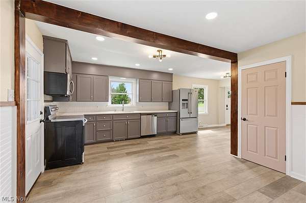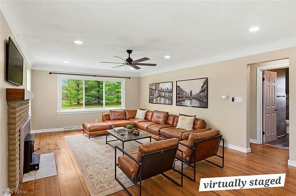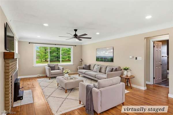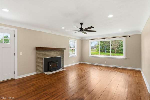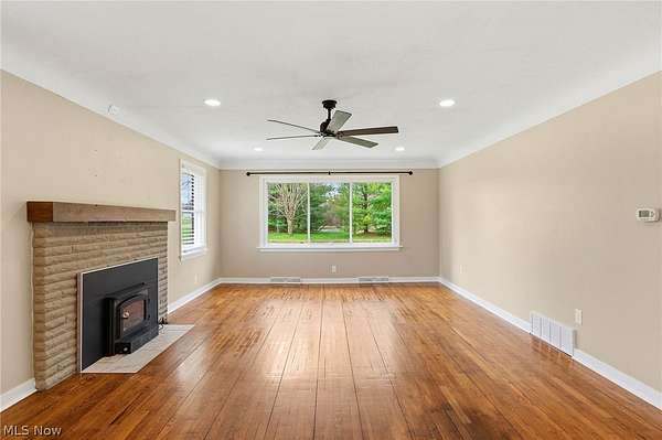 Charming 3-bedroom brick ranch on 2.18 acres, just minutes from Medina! Enjoy the peace of country living with your own pond, a fenced backyard, and a breezeway perfect for pets, muddy boots, or morning coffee. The home features a thoughtfully remodeled open floor plan (2023) with an updated kitchen boasting cabinets, solid surface counters, stainless steel appliances, a new dishwasher (2024), and LVT flooring (2023). Original hardwood floors were beautifully refinished in 2023. The first-floor full bath was completely remodeled (2023), and the mudroom received an update in 2026. The spacious living room is warm and inviting with a new wood-burning insert and flex pipe (2023), while the dining area flows easily from the kitchen, ideal for family meals or entertaining. An extra-deep, oversized garage offers tandem parking, storage for toys, tools, or vehicles, a new back door (Nov 2025), and a new main garage door (2023). Step outside through the breezeway or garage into the fenced backyard or wander down to the serene pond to relax, fish, or swim. Mechanicals are well maintained for peace of mind: oil furnace (serviced Dec 2025), AC, new hot water tank (Nov 2025), new electrical panel (2023), all-new light fixtures and electrical updates (2025), and a well maintained septic system pumped Nov 2025. Exterior doors were updated in 2024, and the roof is in excellent condition. The basement is waterproofed with a lifetime structural and waterproofing warranty (Ohio Basement Systems, 2019; inspected Mar 2026) and includes a partial half bath plus walk-out access to the backyard. Attic storage is easily accessible via stairs. Move-in ready and brimming with character, this home blends country charm with thoughtful modern updates. Cozy evenings by the wood stove, sunny mornings by the pond, and plenty of space for everything you love. Schedule your showing today and see why this property is truly special.