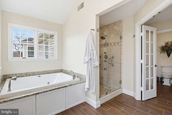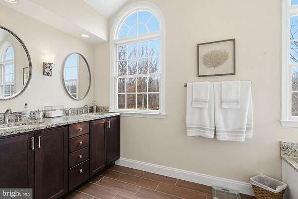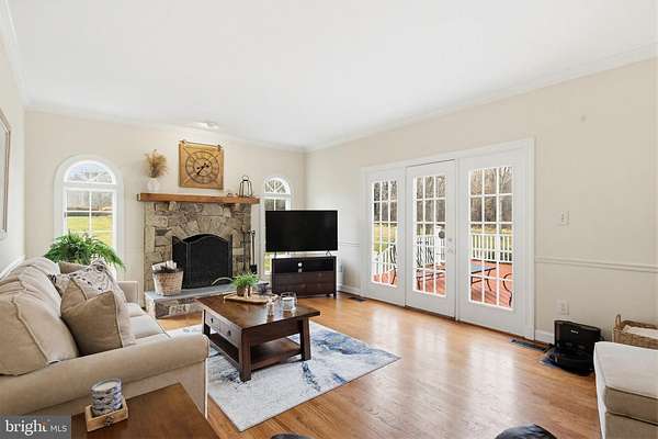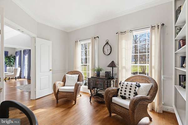 This stunning classic colonial shows like a model home with gorgeous designer touches at every turn. A flagstone covered entry porch greets you to the two story foyer with palladian window and curved hardwood staircase; built-in shelving in den/home office; gleaming hardwood flooring; cathedral and vaulted ceilings; palladian windows in the music room; bay windows in the dining room; solarium replete with skylights and windows overlooking lush acreage. Tasteful crown molding, chair rails, and wainscoting throughout! Gourmet kitchen with quartz countertops and downdraft gas cooking island with designer pendant lighting; stainless steel appliances to include double wall oven; expansive 42" cabinets; recessed lighting; tile backsplash; stone woodburning fireplace with raised flagstone hearth in family room. Laundry/mudroom off garage with sink and walk-in closet. Tremendous primary suite with vaulted ceilings and adjacent sitting room/home office/nursery. French doors lead to primary bath with three granite topped vanity sinks; oversized jacuzzi tub; and separate shower with multi-heads and body jets. Side load garage with epoxy floor. Two-tier deck with vinyl railing overlooks splendid parkland. Paver patio with firepit . Lower level boasts a very sophisticated and upscale living space to include a recreation room with walkout, wet bar and a full bathroom. Large storage area. Outdoor storage space/shed under sun room. Experience this magnificent home to believe it! This is a very discerning home owner's dream come true -- truly impressive! Tucked back nicely in the up-scale Brookefield neighborhood -- the setting is a lush and level 2 acres, backing to Rock Creek Park. Welcome Home! (MAY GO ACTIVE SOONER! -- possibly 3-6)