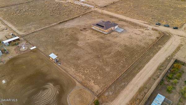 Brand-new 2025 construction in highly desirable Antelope Acres!This stunning 1,833 sq. ft. home sits on 2.5 fully fenced acres and offers modern comfort, open space, and high-end design throughout. Featuring three spacious bedrooms and two beautifully finished bathrooms, this home is filled with natural light thanks to oversized windows and soaring 10-foot ceilings with 8-foot doors.The gorgeous kitchen is a true standout, showcasing waterfall countertops, abundant cabinetry, two sinks--a full kitchen sink plus a convenient prep sink--and a bright, open layout perfect for cooking and entertaining. Oversized windows bring in amazing natural light, highlighting every detail.Enjoy the modern touches throughout the home, including recessed lighting, ceiling fans, and paid solar for energy efficiency. The large master suite offers an enormous walk-in closet and peaceful views of the property.At the back of the home, a full-length covered patio with ceiling fans spans the entire width--perfect for relaxing, hosting, or enjoying the quiet desert evenings. The property is fully fenced with a gated entrance and is located within the Sundale Mutual Water District.A perfect blend of modern design, quality construction, and serene country living--this home truly has it all.