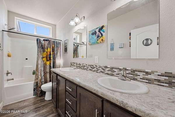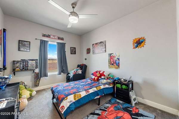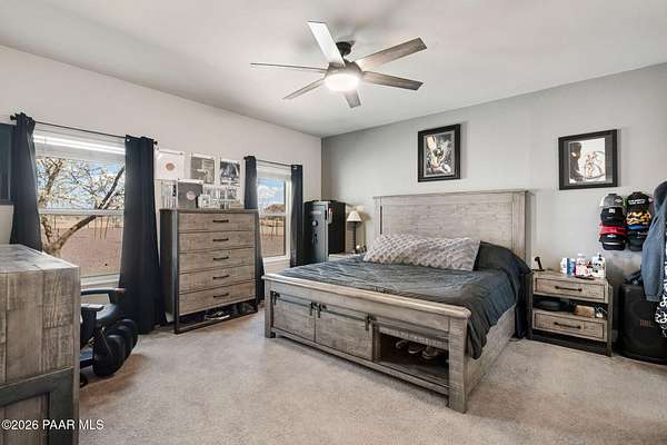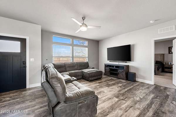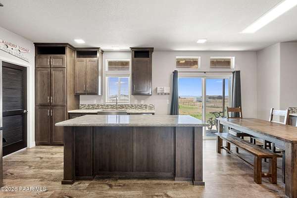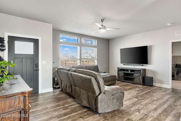 Enjoy space, privacy, and open skies at this 4-bedroom, 2-bath home on over 2 acres in Prescott Valley's desirable north area. With 1,740 sq ft, this home features an open concept floor plan, and abundant natural light. The spacious kitchen offers ample cabinetry, stainless steel appliances, and a center island that flows into the dining area.The split bedroom layout provides privacy, with a generous primary suite featuring dual sinks and a walk-in shower. Outside, the 2+ acre parcel offers plenty of room for RVs, toys, animals, or future plans. Enjoy peaceful rural living with mountain views while still being just minutes from Prescott Valley shopping, dining, and amenities. USDA or Assumable Loan Available.