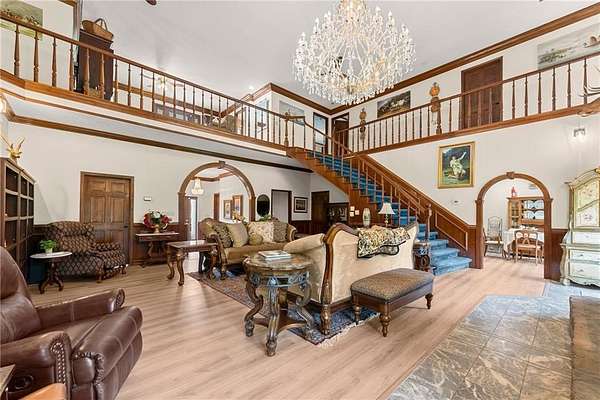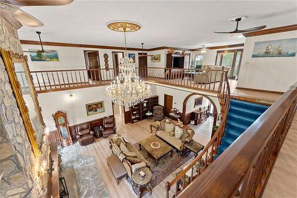 One of the LOWEST PRICED, fully equipped horse properties is now available in beautiful Dawson County! This exceptional EQUESTRIAN ESTATE is a dream for horse enthusiasts, offering everything needed for a functioning farm. The property features a meticulously maintained BARN, a 70x20 COVERED DRESSAGE ARENA, FULLY FENCED lush pastures, and scenic riding trails that provide endless opportunities for training and leisure. The newly renovated ESTATE HOME offers comfort and modern amenities on beautiful 30.54+/- Acres. Located in beautiful North Georgia, Starfire Farm combines rural tranquility with convenience, making it ideal for equestrian living or business. As you step inside, you're greeted by NEW Luxury Vinyl Plank (LVP) flooring seamlessly connecting all rooms on the main level. The heart of this home is its meticulously crafted kitchen w/breakfast room, where custom wood-stained cabinets, professional-grade stainless steel appliances, large Island which affords extra seating, & stunning granite countertops create an inviting space for culinary pursuits. A farmhouse-style sink adds a touch of rustic charm, while all-NEW lighting and plumbing fixtures illuminate the space with effortless grace. Bathed in natural light from a vaulted ceiling, the kitchen exudes warmth & sophistication, perfect for any level of cooking enthusiast! The huge separate freshly painted Dining Room seats 12+ and is ideal for entertaining, holiday get togethers or those intimate family dinners. And after...what better place to unwind and relax than in the bright and airy Family room offering a double stoned wood burning fireplace to cozy up to. At the end of the day indulge in relaxation in the master suite, freshly painted and adorned with new lighting fixtures. Experience a sanctuary of tranquility, in the spa-like master bath featuring a luxurious soaker tub, a custom-tile walk-in shower, granite countertops, and vessel sinks atop custom wood cabinets! The upper level has a wraparound loft area, renovated bathrooms, and 5 spacious secondary Bedrooms with ample closet spaces and a full completely remodeled Bath. Life doesn't get better than this! The land includes 20 acres of lush pastureland featuring a meticulously curated blend of endophyte-free fescue and orchard grass. The property is fully fenced adding to its equestrian allure, a 60-foot round pen provides a dedicated space for training and exercise. Included is a 40x30 six-stall barn complete with a tack and feed room, as well as an upper hay loft for ample storage. An expansive 70x200 covered dressage arena, outfitted with a state-of-the-art sprinkler system fed by two 5,000-gallon watering tanks, ensures optimal riding conditions year-round, with rainwater harvested from the arena roof. Complementing these amenities is a 40x60 tractor barn, offering generous storage space for horse trailers, hay, and equipment, along w/ two additional rooms for tools and supplies. Watering systems include five automatic BarBar and Watering Post setups. Barn has water pipes that are set to go into each stall for automatic Waterer's. A small spring at the rear of the property offers a serene retreat and additional water source. Added note: 6" studs on exterior walls! Arena is wired for lights - There is an electrical conduit put in up to the arena for wire to snake through. its proximity to Dawson Forest and various equestrian trails, this estate offers a unique opportunity for discerning buyers seeking a harmonious blend of luxury living and pastoral serenity. From mountain views of Big Canoe to proximity to wildlife trails along the Etowah River, the location is truly unmatched. Horseback riding trails, river rafting opportunities, and nearby North Georgia attractions ensure endless entertainment options. With its impeccable craftsmanship, breathtaking surroundings, and unparalleled amenities, this estate invites you to experience the epitome of Southern living.