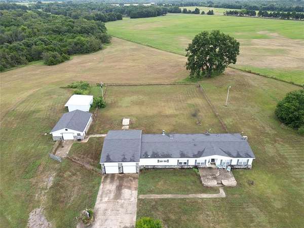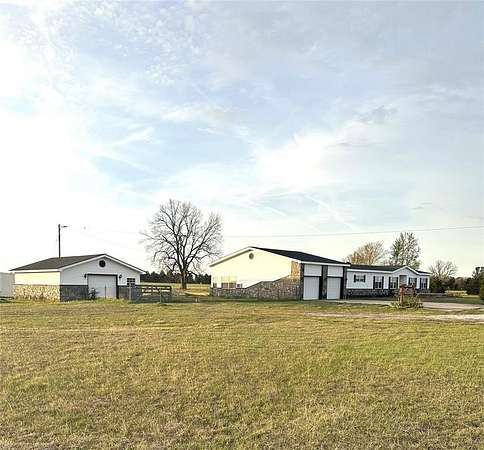 Country living at its best! 4 bed, 2 full bath 2240 sq ft manufactured home with attached double garage, detached shop building (720 sq ft), metal loafing shed (576 sq ft) and storm shelter on 20.4 partially open and wooded acres. Open kitchen, dining and two living areas, designated office. Large sunroom with new flooring. Separate utility room with entrance to the attached garage. New roof and trim on all buildings October 2025. Central heat/air, rural water, large front porch and back patio. Shop has garage door, side door, separate enclosed room, water, electricity and propane heater. Area behind the house is fenced for pets and children. Paved sidewalks and garage drive/entry. Mature pecan trees. Acreage can be used for livestock, haying, hunting and just enjoying privacy and nature. One small pond. Easy access off of Hwy 1 between Allen and Atwood, Ok. No dirt roads, drive is gravel and paved. Move in ready and available for quick closing.