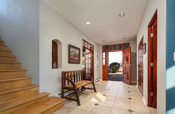 Nestled at the end of Coyote Trail, down a mile long private drive, sits an exceptional 61 acre sanctuary. The solar powered custom security gate opens to captivating panoramic views spanning the Flatirons to Twin Peaks. This estate features a world class 3800sf post & beam barn, equestrian facilities, an artful southwestern style home & incredibly valuable water rights. Protected by Boulder County Conservation easements to the north & private farmland to the west creating a serene refuge minutes from quaint Hygiene's cafes & shopping, Lyons, CO "Gateway to the Rockies", Village at the Peaks housing Whole Foods & movies. Coyote Ridge Farm is a premier equestrian property w/ unparalleled privacy & care witnessed at every peaceful turn. The owner created a protective firebreak around the home for low fire risk & the surrounding irrigated hay fields ensure low flood risk & no prairie dogs. The 3 bed, 3.5 bath home features warm earth tones, wood beams, sunbathed interior spaces with mtn/farm views out every window. Fountains lead to a relaxing courtyard w/ patio & hot tub. The tranquil sounds of owls can be heard hooting in the many mature trees around the property. The acclaimed barn was constructed in '14 of locally sourced materials matching European design. Generously sized 14x14 stalls are concrete block built creating thermal mass insulation for perfect year round temps & power washing ease. The barn includes a heated tack room, wash stall, automated waterers & exterior pens, plus a great room w/ half bath & an attached greenhouse. Add'l equestrian facilities: pipe metal fencing sectioned for boarding, a farm courtyard protected by southwestern style coyote fencing providing safety for farm animals, riding arena, large turnaround for horse trailers, grazing meadows & verdant hay fields irrigated via owned ditch rights. The lower end of the farm offers an outdoor arena, small pond, storage buildings & a decommissioned ADU with restore/repurpose potential.
