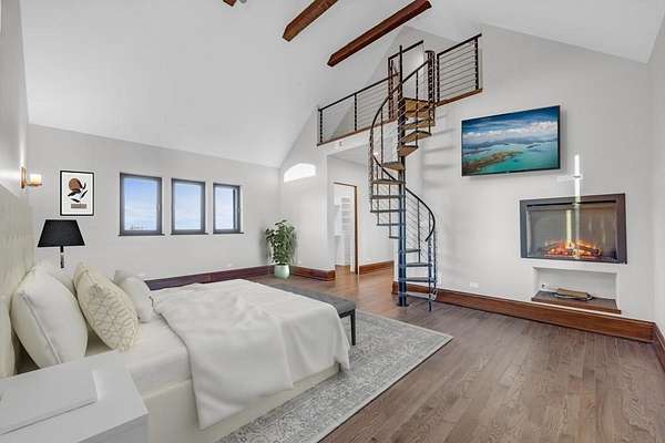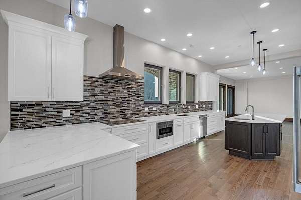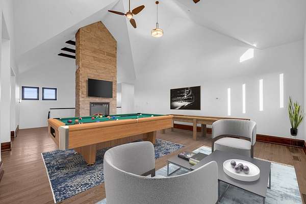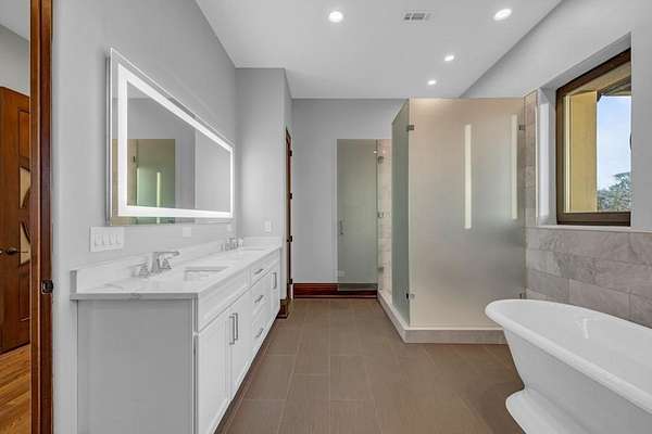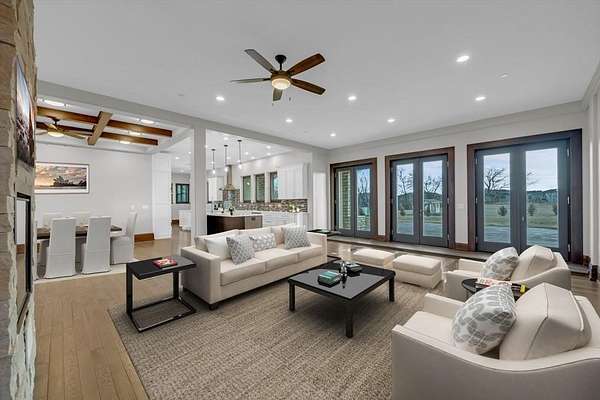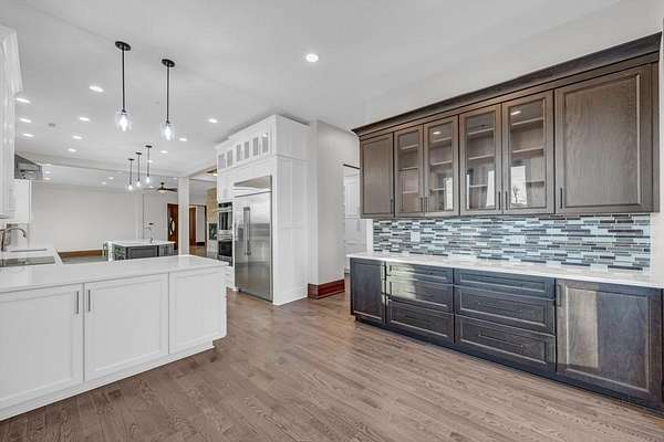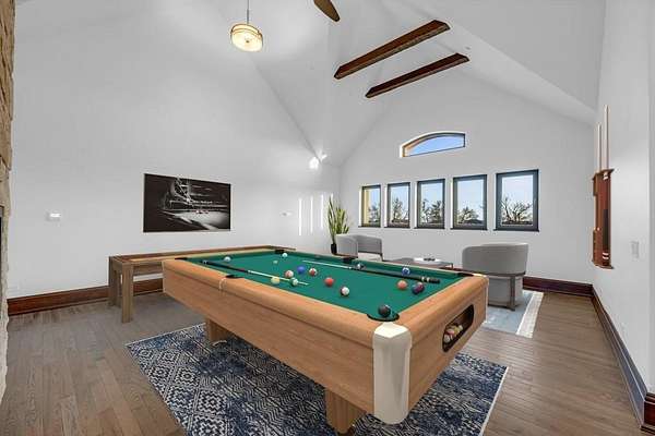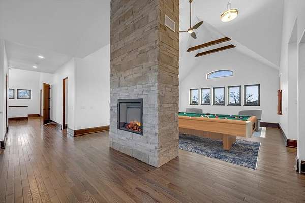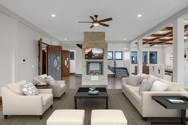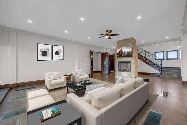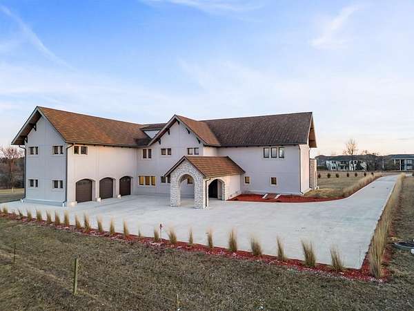 This stunning 11,000 sq ft Mediterranean-style estate seamlessly blends luxury, comfort, and sustainability on a private 3-acre lot. The open floor plan features exquisite hardwood floors throughout, an updated kitchen with quartz countertops, stainless steel appliances, and a spacious walk-in pantry. The home boasts two main-level suites with attached baths, four generously sized upper-level bedrooms, and a theater and game room for ultimate relaxation. The 3,500 sq ft basement is a blank canvas, ready to be transformed to suit your needs, while six fireplaces and heated floors in the basement and garage add warmth and comfort. Designed with eco-conscious living in mind, this net-zero home features high-level insulation, airtight construction, a durable metal roof, and energy-efficient Endur insulated windows. Geothermal heating and cooling, along with a greenhouse generating renewable energy, further enhance the home's sustainability. Offering unparalleled elegance and environmentally friendly design, this estate is a rare find. All information obtained from seller and public records.