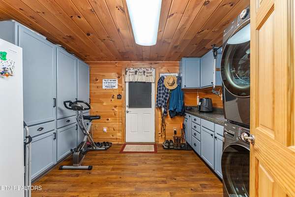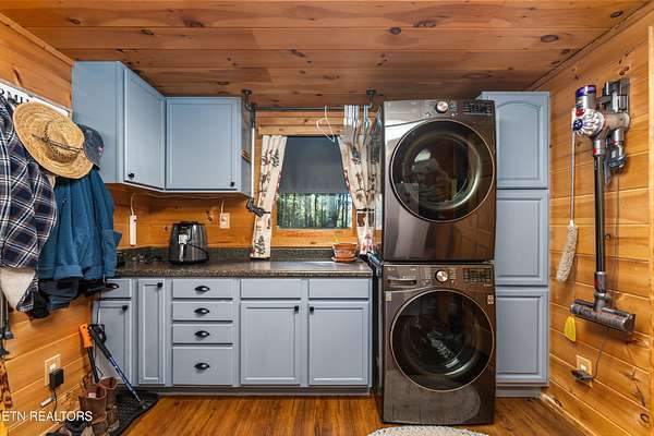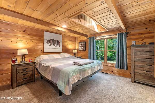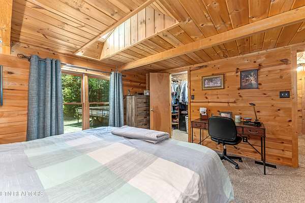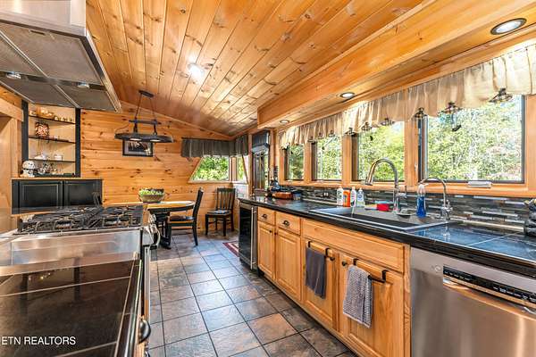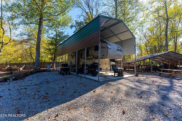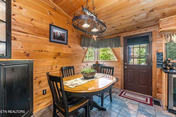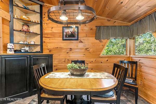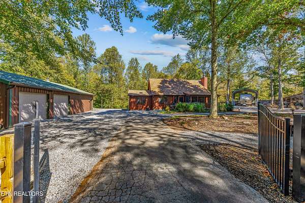 Mountain Views Fully furnished, move in ready Rental opportunity or full-time residence Primary on main floor Experience the perfect blend of cozy charm and rustic elegance at the foot of the Great Smoky Mountains National Park, nestled in the peaceful side of Townsend. This rare 5.5-acre property boasts a spacious, level yard and a private covered carport and picnic area, ideal for outdoor gatherings. The detached garage offers four parking bays and includes dedicated office space, providing both convenience and functionality.