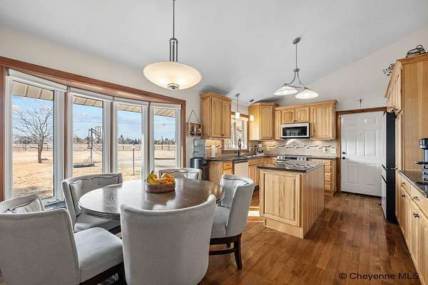 Welcome to 7219 Yellowstone Rd in Cheyenne, WY — where close-in rural living meets everyday convenience. This 4 bed 3 bath home is perfectly positioned just minutes from town, this property offers the peace, space, and privacy of country living without sacrificing access to shopping, dining, schools, and major routes. Enjoy wide-open skies, room to breathe, and the freedom that comes with an excellent close-in rural location. The curb appeal shines with beautiful, low-maintenance landscaping designed for year-round enjoyment. Mature trees, thoughtfully designed hardscape, and easy-care features create a welcoming outdoor space that looks stunning without demanding your weekends. The 24x40 outbuilding offers space for hobbies, projects, toys, and more! Inside, the gourmet kitchen is the true heart of the home. Featuring high-end finishes, quality cabinetry, generous counter space, and modern appliances, it’s ideal for entertaining, holiday gatherings, or everyday living. The open layout flows seamlessly into the main living areas, creating a warm and functional space filled with natural light. If you’ve been searching for a Cheyenne home that combines rural charm, refined finishes, and convenience to town, 7219 Yellowstone Rd delivers. Schedule your private showing today and experience the best of Wyoming living just minutes from everything Cheyenne has to offer.