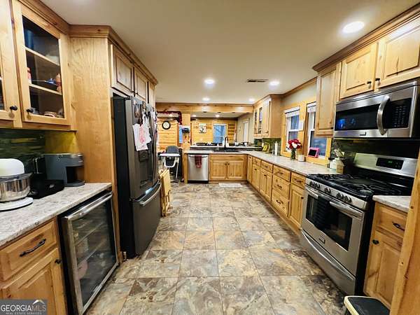 Charming brick home filled with warmth and character! Relax on the inviting covered front porch before stepping inside to a cozy, cabin-inspired interior featuring beautiful wood accents throughout. The spacious flex bedroom offers a unique fireplace focal point and a comfortable retreat-like feel. The updated kitchen boasts custom wood cabinetry, ample counter space, modern appliances, and flows easily into the dining and living areas-perfect for everyday living and entertaining. Natural light pours in through multiple windows, highlighting the home's craftsmanship and inviting atmosphere. Outside, enjoy the peaceful setting and welcoming curb appeal. A perfect blend of rustic charm and modern comfort-this home is one you won't want to miss!