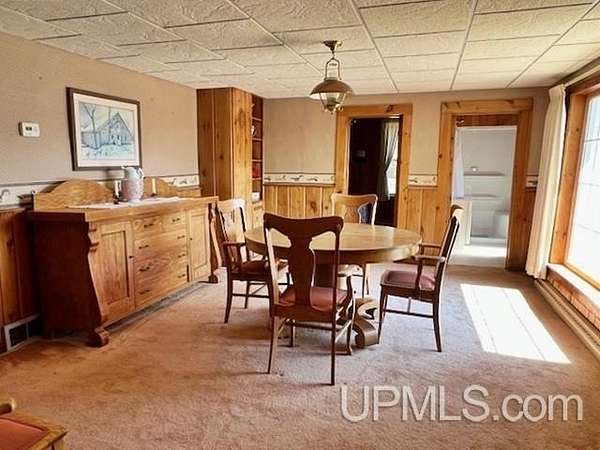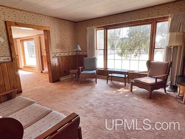 A pristine setting surrounds this charming 2-story, 4 bedroom, 2 bath home set on 34 beautifully wooded acres. The property features approx 1,400 feet of frontage on the Little Wausaukee River, a Class 1 trout stream—perfect for enjoying and exploring a long, calm stretch of water. Filled with character and natural beauty, the home offers an updated eat-in kitchen with newer cabinetry, Corian countertops, tile flooring, and ample storage. A formal dining room and spacious living room showcase large picture windows that bring in natural light. Cozy up to the woodburning fireplace accented with granite stone, or unwind in the sunroom while taking in peaceful views of the surrounding wildlife. Upstairs, the primary bedroom features a skylight and a 13x12 bath. Additional highlights include attic storage, a full basement, and a blacktop driveway. The large 18x66 detached 2-car garage includes a workshop area and additional attic storage. The 34 acres are complemented by rolling hills and towering white and red pines, creating a truly serene setting. A nature lover’s paradise!