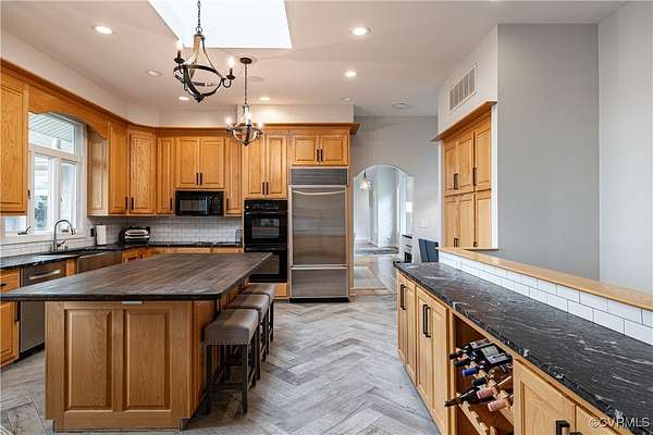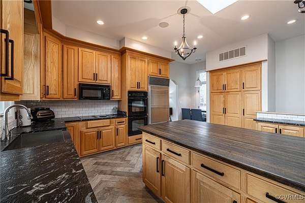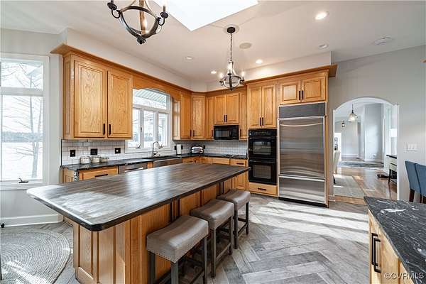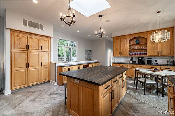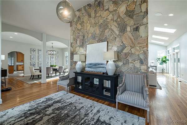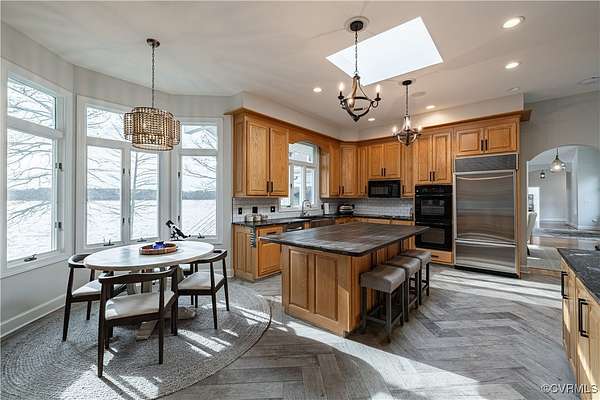 - Bath In Primary Bedroom, Bay Window, Bedroom On Main Level, Breakfast Area, Cathedral Ceilings, Ceiling Fans, Fireplace, Granite Counters, High Ceilings, Kitchen Island, Main Level Primary, Pantry, Recessed Lighting, Skylights, Walk In Closets