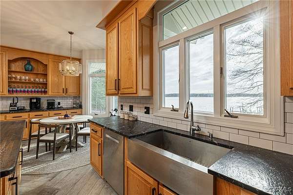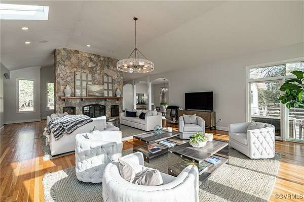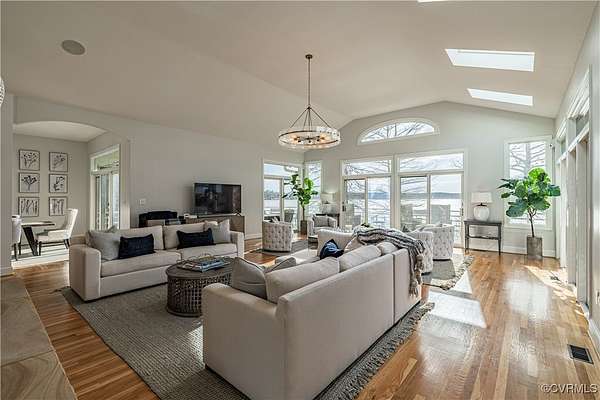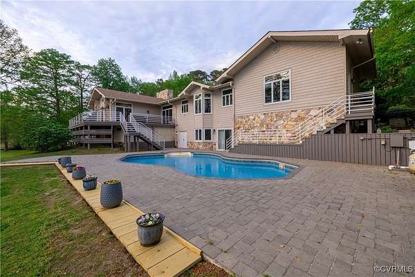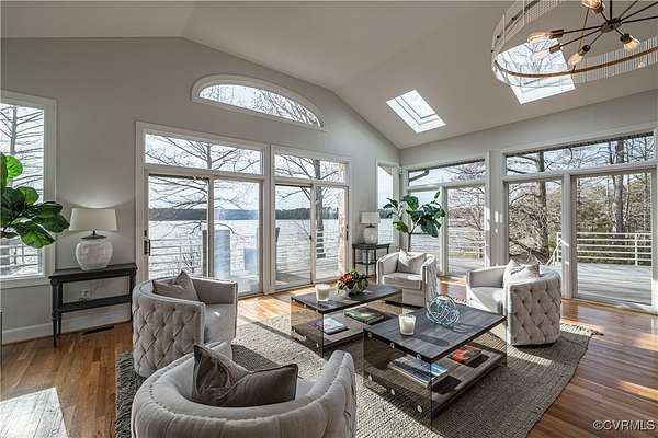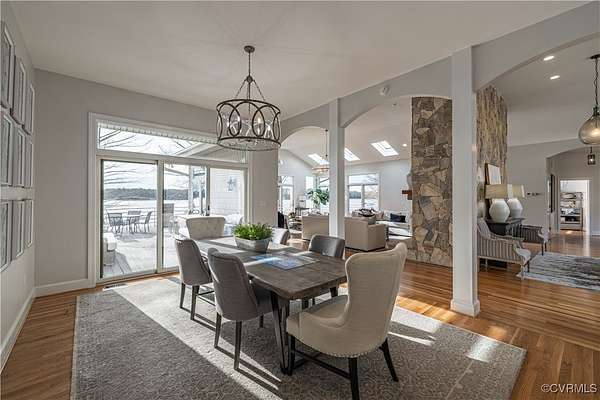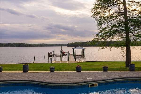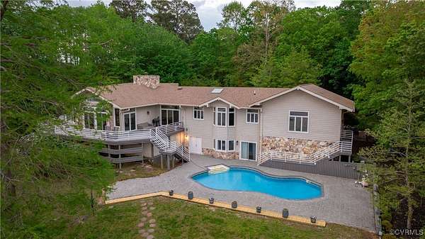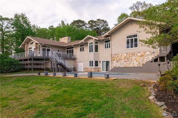 ""This home offers breathtaking river views 10K Grady Lift, 2 Jet Ski Lifts, 4 Floating Platforms and 440 ft of bulkhead Round out the Waterside. Wide River Views. It features updated lighting and chandeliers, modern tile, Lutron light switches, Kef speakers, 3M tinted windows and doors, leathered granite countertops in the kitchen, a Jenn-Air stove, just to name a few. The house features two primary suites - one upstairs and one poolside. The primary on the main floor boasts two renovated """"his and hers"""" bathrooms and walk in closets. An office off the primary suite, with a private exterior deck entrance, could easily be transformed into a third primary suite. The home also includes 2 bedrooms, with Jack & Jill suites on the first floor that offer a fireplace and deck access. The living and dining rooms are enhanced by cathedral ceilings, a stone chimney, and a fireplace. The open floor plan provides incredible views! The pool level offers direct access to the second primary suite and multiple storage areas. The property also includes a two-car attached garage and a two-car detached garage. Internet access is available, and there's a shared pond with a fountain, ideal for fishing. A boat parking pad completes the package. This home is located in the perfect spot on the river, providing a fantastic setting for summer fun! PROFESSIONAL PICS ON WEDNESDAY""