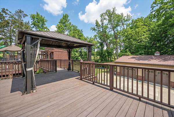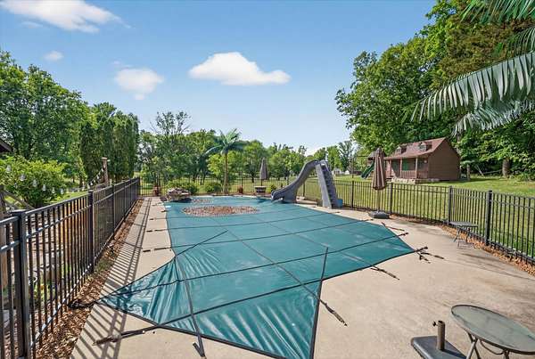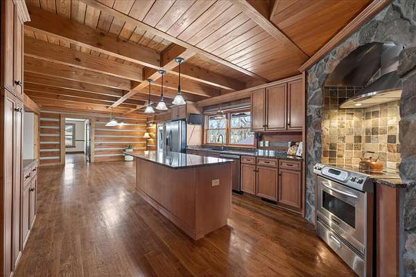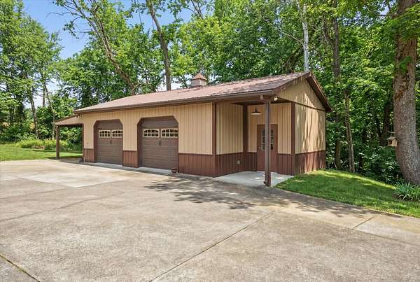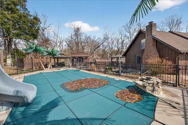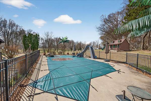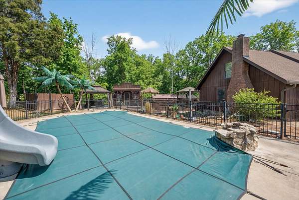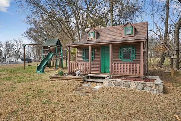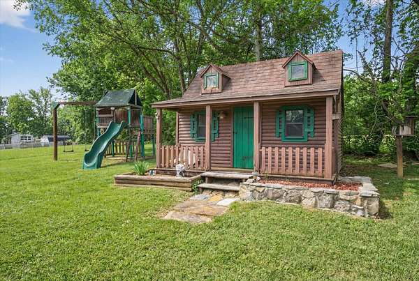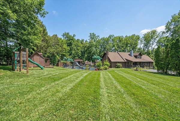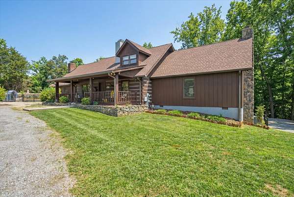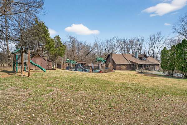 Only 2 miles from Exit 11 in the Sango area and located within the Rossview High School limit! Welcome to the 2.9 acres of tranquility, whether on the front porch and swing, in the heated inground pool or as you enter into your very rustic, 2 story extended log cabin! Open the door to an open-concept great room the 1st of 4 fireplaces and open concept dining area into kitchen with a large island boasting beautiful granite counter tops and stainless steel kitchen appliances and over-sink TV. 3 other fireplaces are located in spacious main floor 28X20 primary en-suite bedroom,in the the high celinged rec rm/2nd living rm (lg TV included) and an electric one in the finished partial basement. 3 additional bedrooms, full bathroom and a 15 X13multi-purpose loft area are located on the 2nd floor. 18X24(irregular shaped) finished partial basement/recreation/entertainment room with lots of storage, a “secret room”, exits to 2 separate 1 car garages, a 1/2 bath and walk-out to a sitting area! *, Oversized(40x24), detached double-garage-door 2 car garage/workshop with a lean-two/covered parking space!* Enjoy an outdoor relaxation or entertainment experience with the well-maintained HEATED in-ground pool with waterfall, outdoor kitchen/bar, 2 pergolas, pool house, covered front porch and covered rear wood deck, stocked koi pond, playhouse and play set. This property is located on 2.9 acres!