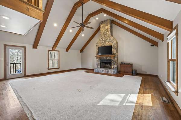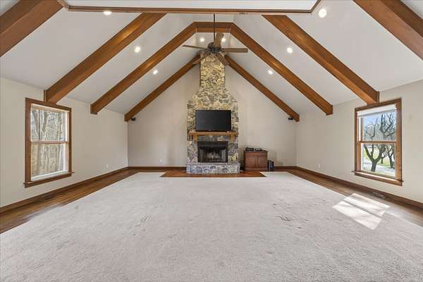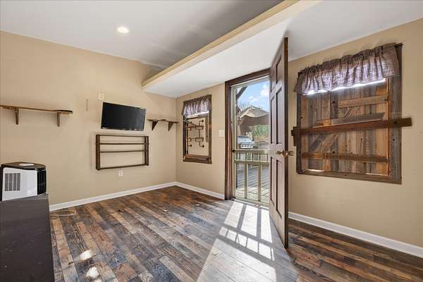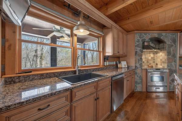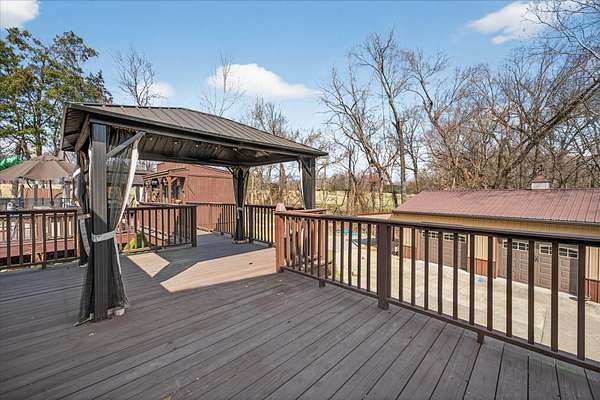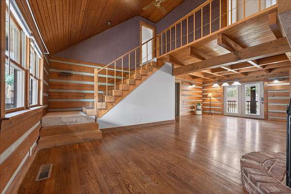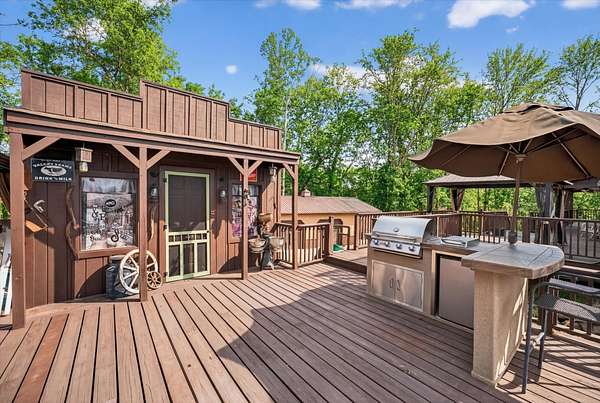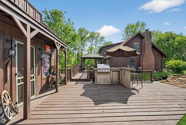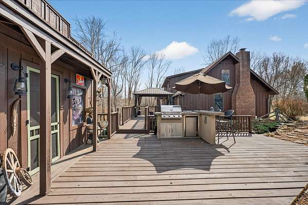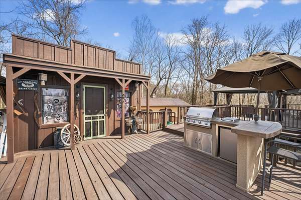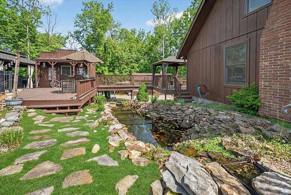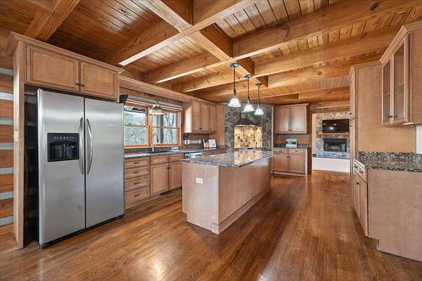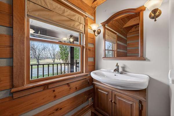 Only 2 miles from Exit 11 in the Sango area and located within the Rossview High School limit! Welcome to the 2.9 acres of tranquility, whether on the front porch and swing, in the heated inground pool or as you enter into your very rustic, 2 story extended log cabin! Open the door to an open-concept great room the 1st of 4 fireplaces and open concept dining area into kitchen with a large island boasting beautiful granite counter tops and stainless steel kitchen appliances and over-sink TV. 3 other fireplaces are located in spacious main floor 28X20 primary en-suite bedroom,in the the high celinged rec rm/2nd living rm (lg TV included) and an electric one in the finished partial basement. 3 additional bedrooms, full bathroom and a 15 X13multi-purpose loft area are located on the 2nd floor. 18X24(irregular shaped) finished partial basement/recreation/entertainment room with lots of storage, a “secret room”, exits to 2 separate 1 car garages, a 1/2 bath and walk-out to a sitting area! *, Oversized(40x24), detached double-garage-door 2 car garage/workshop with a lean-two/covered parking space!* Enjoy an outdoor relaxation or entertainment experience with the well-maintained HEATED in-ground pool with waterfall, outdoor kitchen/bar, 2 pergolas, pool house, covered front porch and covered rear wood deck, stocked koi pond, playhouse and play set. This property is located on 2.9 acres!