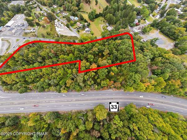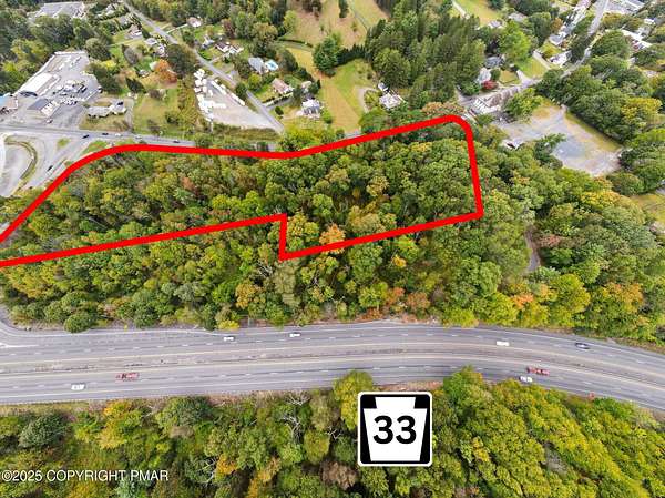 Prime commercial land opportunity in the Poconos! This 4.5-acre corner lot sits at the intersection of State Route 115 and Cherry Valley Road, offering unmatched visibility and traffic flow. Positioned directly between the on/off ramps for Route 33, this property provides easy access to I-80, Stroudsburg, and surrounding Pocono communities, making it an ideal location for retail, office space, hospitality, or other high-demand commercial uses. With frontage on two well-traveled roads, your business or project will benefit from consistent exposure in a rapidly growing corridor. The parcel currently includes a single-family home that has been used residentially for decades. However, the real value lies in the land itself. The existing structure will likely need to be demolished to unlock the full potential of the site, giving developers and investors a clean slate to work with. With mostly level topography, strong road presence, and flexible possibilities, this property is well-positioned to become a cornerstone project in Monroe County. Key highlights include: 5 acres of land listed below appraised value, corner lot visibility with dual road frontage, immediate proximity to major commuter routes, and investment upside in an area experiencing steady growth. Whether you are looking to establish a business, develop income-producing space, or secure land for future use, this parcel offers both opportunity and location. Opportunities like this-large, visible, and strategically located parcels with direct highway access-are increasingly rare in the Poconos. If you've been waiting for the right site to bring your vision to life, this one checks every box.