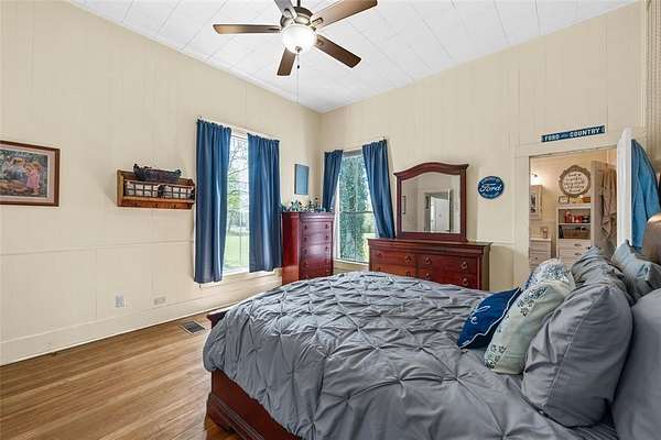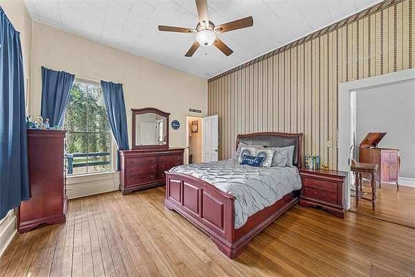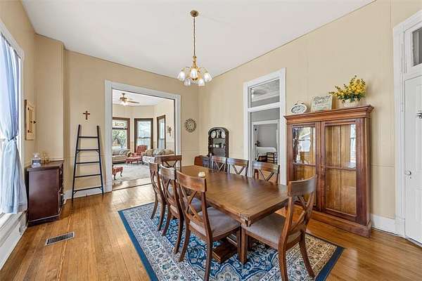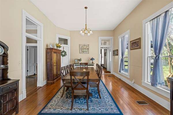 Step into timeless elegance of this beautifully restored 1900 home where historic charm meets thoughtful present-day updates. Nestled on a spacious 1.7-acre lot, this property welcomes you with a stunning front porch perfect for relaxing under the shade of mature trees. Inside, you’ll find soaring ceilings, large sun-filled windows, and exquisite original woodwork that highlight the home’s rich character. Details such as transom window doors, intricate trim, natural wood finishes, and built-ins add warmth and craftsmanship rarely found today.