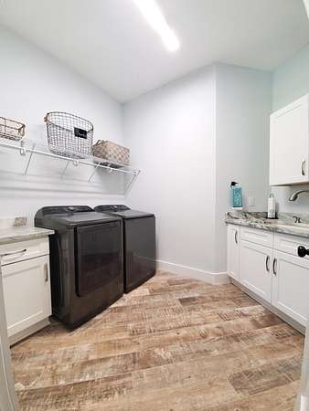 - Ceiling Cathedral, Ceiling Raised, Ceiling Vaulted, Fireplace, Lighting Recessed, Pantry, Shelving, Split Bedroom, Washer/Dryer Hookup
