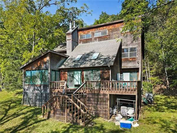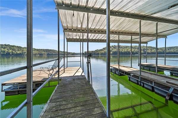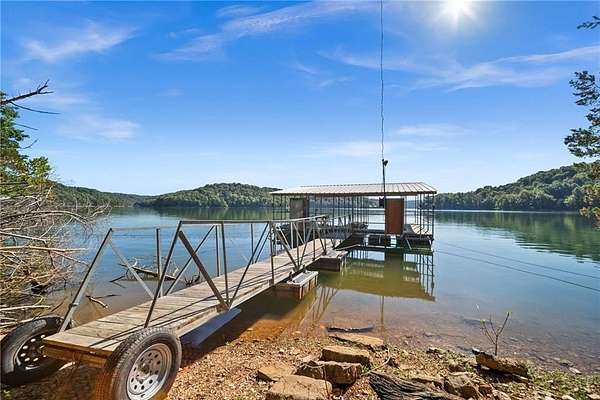 Est $4,535/moHere is a remarkable lakefront property on Beaver Lake at the end of Angell Rd. Two parcels of land over 15 acres with a 1400SQFT cabin and a private 2-slip boat dock with two- 10 x 25 slips and a swim platform. Pretty trees all around and quiet Hogscald hollow for your retirement or vacation dreams.