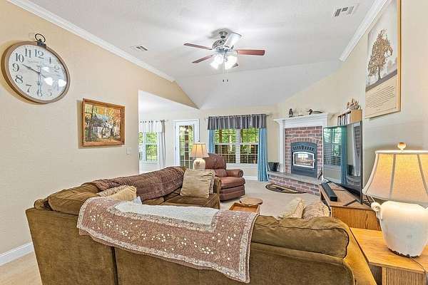 Custom-built in 2021, this full-brick home offers quality craftsmanship and serene country living. Features include 9' ceilings, crown molding, custom cabinets throughout, cultured marble countertops, and a gas double oven & range. Home now has fiber internet service. The primary suite boasts a walk-in closet and luxury walk-in shower with twin heads, grab bars, and seat. Enjoy a screened-in porch, wood fireplace with blower, and an oversized 22' x 27' heated & cooled garage. Property includes a 20' x 36' workshop with 100AMP service, 30-amp pedestal with water, perfect for RV hookups or hobby projects, and beautiful park-like acreage with abundant wildlife. Located in a peaceful, private setting yet only minutes from NW Arkansas conveniences, this home offers the best of both worlds.