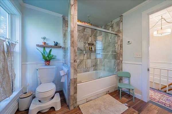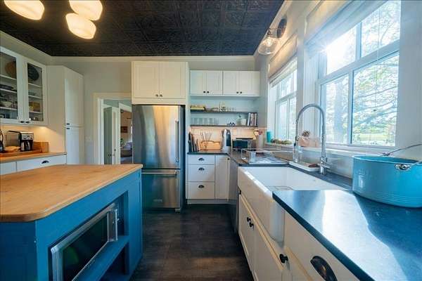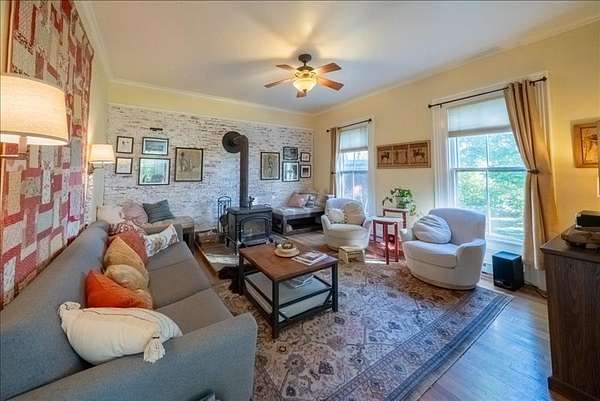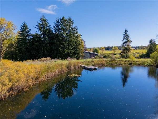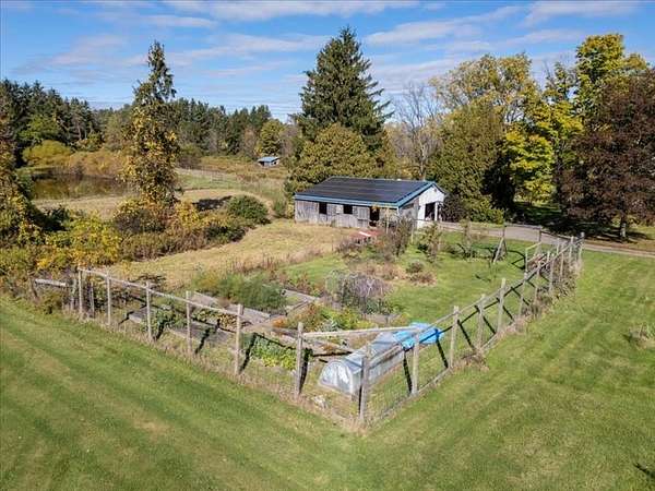Welcome to 7221 Halseyville Road, a perfect balance of rural tranquility and village convenience. This remarkable 105 year old 4 bedroom, 1 1/2 bathroom home celebrates it's original architectural details including hardwood flooring, wide real wood molding and trim, floor-to-ceiling windows and soaring ceilings. The updated country kitchen includes custom cabinets, ample pantry, granite counters and stainless appliances. Both bathrooms have been updated as well with ceramic tile and a rain head shower. This home enters it's second century fully updated with sustainability and energy efficiency in mind, including 15kWh solar array, solar hot water, mini-split heat pump cooling and heat, and induction range. The garage is even pre-wired for EV charging. The outside of the home has recently been restored with cedar shake siding and is freshly painted. Situated on 10 beautifully curated acres, the property includes a 2 acre fenced pasture with run-in shed for horses and livestock; a smaller winter pasture connected to a lean-to barn with space for stalls; a fenced raised bed garden and orchard; chicken yard and coop. And for summer play and fishing, a large spring fed swimming pond with dock. The north end of the property surrounds Jenny Creek, a perennial stream running through the hardwood forest, perfect for a peaceful retreat or nature watching. Come visit this beautiful property, walk the maintained pathways, and discover for yourself not just a home, but a legacy.