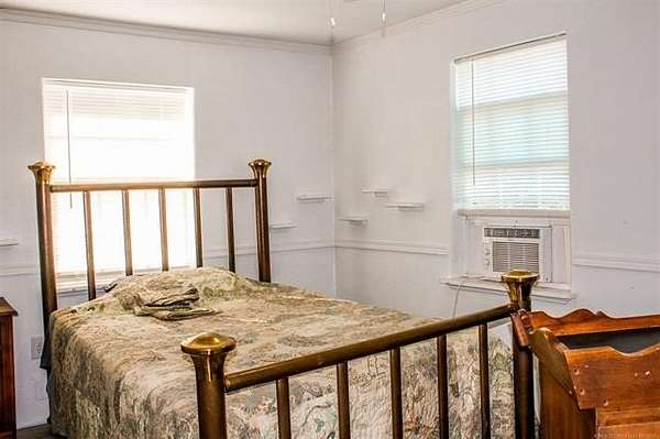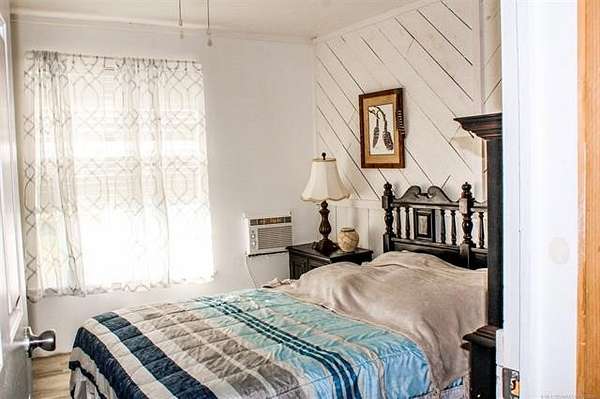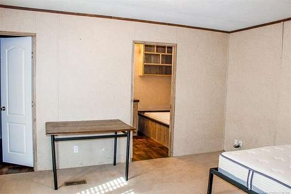 Nestled just a short drive from the recreational paradise of Lake Eufaula, this tranquil 21-acre (more or less) estate presents an exceptional opportunity. The property boasts a charming main house, complete with four comfortable bedrooms, two well-appointed bathrooms, a practical laundry room, and a durable metal roof, ensuring lasting quality. The attached garage, thoughtfully designed with a convenient half-bathroom and generous space for storing toys and equipment, requires only a little tender loving care to reach its full potential. Complementing the main house is a ready-to-move-in mobile home offering three bedrooms, two bathrooms, and a nearly new, efficient aerobic septic system, providing peace of mind. Beyond the dwellings, the property features a versatile Butler building equipped with power, a reassuring large storm cellar for safety, and a substantial 5,000 square foot shop - a former grow operation - that has been thoughtfully divided into four separate rooms, making it ideal for a wide array of uses, from workshops to storage or even a business venture. The entire estate is securely encompassed by a complete perimeter fence and features a picturesque large pond, adding to the property's natural charm and recreational possibilities.