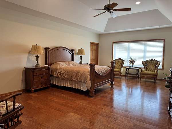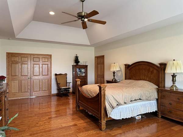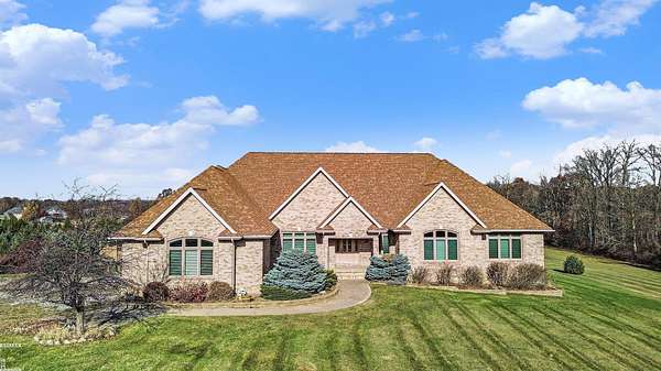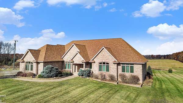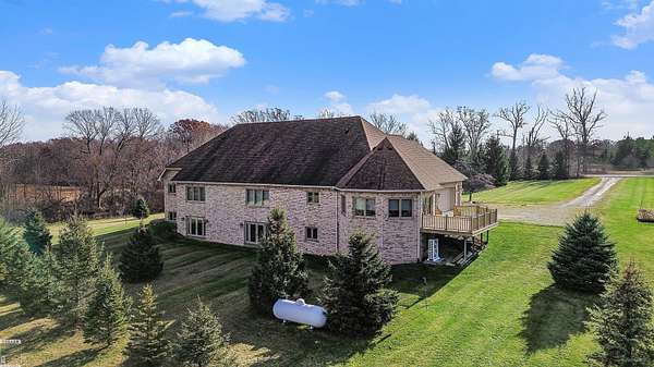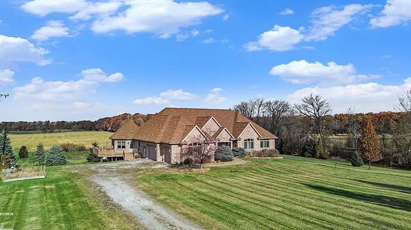 Est $5,121/mo5 ACRES, NO HOA, BARN OK. Meticulously constructed by original owners in 2005 with many unique additions throughout ownership.Views of grounds nearly everywhere. Wheel chair ready first floor.Radiant heat and Air recently added.Granite Kitchen and Ceramic Baths, Cherry Cabinetry. Oak moldings and doors, wood flooring. Bright home with custom generous sized windows First Floor Laundry with large walk in closet, double closets in all but one bedroom. Lower level with steel ceiling construction, plumbed for kitchen and bar areas, and two double large door walls access lower patio and views of rolling lovely grounds. Attention to detail throughout includes newer radiant heating, custom blinds. Much more that space does not allow.