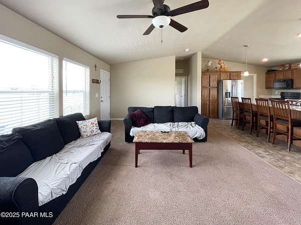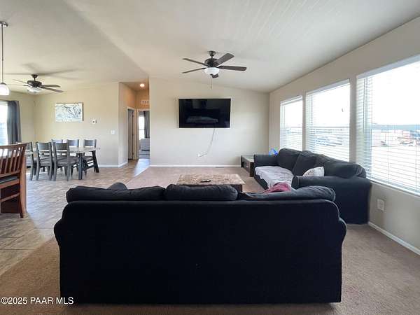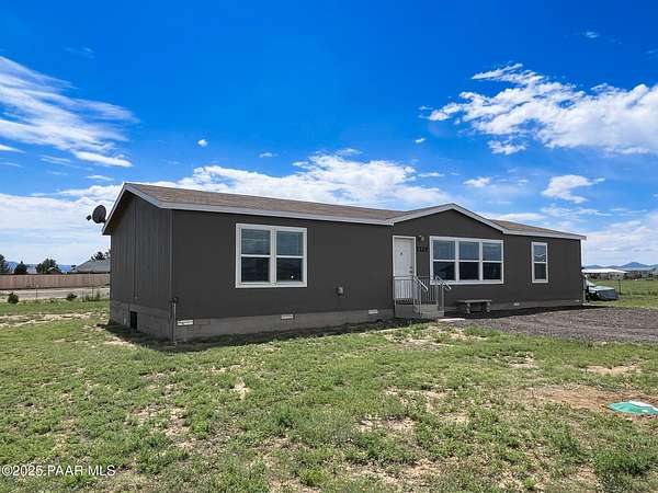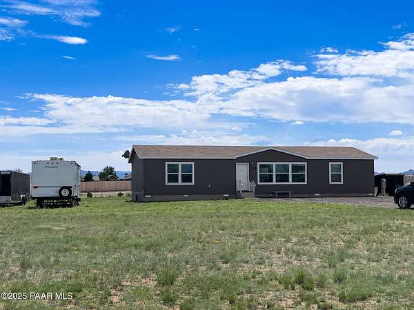 Welcome to 7225 E Trottin Down Road in the peaceful Poquito Valley of Prescott Valley of Prescott Valley. Built in 2019 by Cavco, this charming home offers the perfect blend of modern convenience and country living. With 1,634 square feet, this single level layout includes three spacious bedrooms and two full bathrooms. The open concept great room welcomes you in with natural light and flows into a stylish kitchen featuring laminate counters, a large island and eat-in dining.Sitting on a flat 2.00 acre corner lot, this property provides plenty of space for outdoor living, animals, and all your toys. The home features central air conditioning, ceiling fans throughout, and durable vinyl and carpet flooring. The split floorplan offers privacy with a main level primary suite, while energy efficient double pane windows and aluminum frames keep things comfortable year round.Enjoy the freedom of rural living with no HOA, RV parking with hookups and a pad, and zoning that allows for horses and farm animals. The property is equipped with a private well, electric heating, and a 50 gallon electric water heater. Access is easy with county maintained paved and gravel roads. You'll also appreciate the breathtaking views of Granite Mountain and Mingus Mountain that surround you.With low taxes, open skies, and room to roam, 7225 E Trottin Down Road is the perfect place to call hime in Prescott Valley.