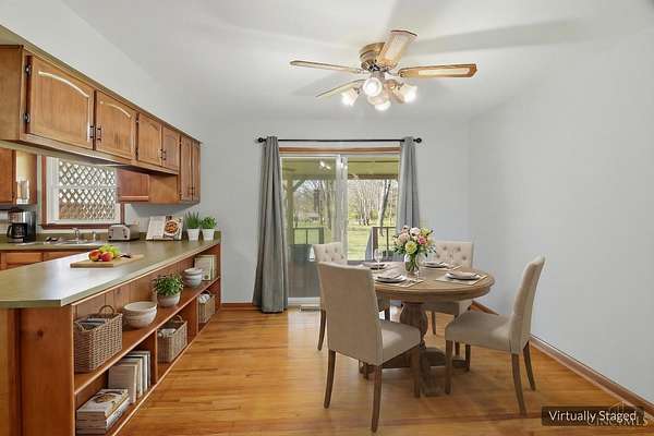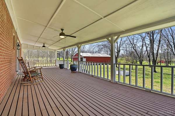 Country serenity meets modern convenience - 4 acres of peace, spacious 4-bed, 2-bath home with nearly 3,000 sq. ft. finished living, & a massive 1,500 sq. ft. insulated Amish pole barn. Inside, character abounds with hardwood floors, 2 fireplaces, and natural woodwork. Unique first-floor primary suite adjoins full bath for added convenience. Updates in 5 years: roof (home & barn), gutters with guards, hot water heater, sump pump, electric, and modernized bathrooms with subway tile. The finished basement boasts a rec room (pool table stays), fireplace, and two bonus rooms. Enjoy gorgeous views from the covered deck. A long driveway and extra parking pads complete this country retreat. Just needs your finishing cosmetic touches to make this beauty shine again. Being sold to settle estate, so sold as-is. Agent is related to the sellers.