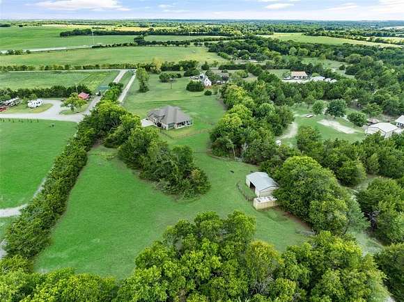*MOTIVATED SELLERS* This picturesque country estate presents a rare opportunity for a discerning buyer. Flexibility is this property's super power. Located on 2.29 picturesque acres, privacy is provided by a natural tree line, the long driveway adds to the sense of seclusion. Back section of land is fenced and cross fenced, livestock ready, garden worthy - outdoor shower is a sweet addition! No need to pay for storage, bring the boat and RV!! No deed restrictions, addl. structures could be added for personal or business use, oversized transformers and 4 septic tanks are in place. No sacrifice to convenience, the property is literally minutes to SH 121, providing easy access to amenities in Anna and Melissa. The custom home is a designer's masterpiece, an impressive infrastructure including Cat 6 Internet cable, walk in attic, spray foam insulation, reinforced flooring. Work from home or homeschool, this property was designed with both in mind. The spacious flex space is filled with natural light, privacy, we appreciate the generous storage throughout the home. With over 3200 sq ft, there is space for big gatherings and a quiet retreat. The kitchen is a showstopper, the massive island can accommodate a big party or afternoon homework. With dark lower cabinetry and white uppers, the attention to detail here is magazine worthy. Easy flow into spacious casual dining and living areas. The wall of windows and views make this living area extra special. Four BR located on main floor, including the owner's suite. The main BR tray ceiling and enormous ensuite with dual vanities, shower and designer tiles add to this home's elegance. 5th BR is on upper level with full bath, the entire home is well thought out. Covered patio provides beautiful secluded views, the iron fence provides unobstructed views, with protected space for play or pets. This home is exceptional, including location, a must see. Owner occupies the home. Please do not enter property without an appt.
