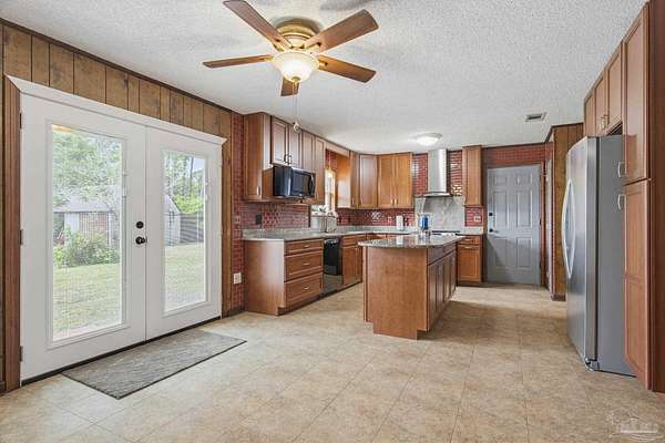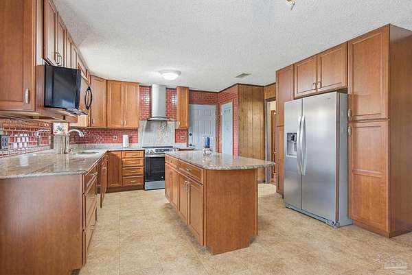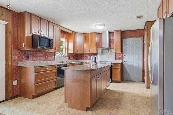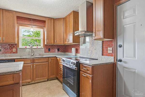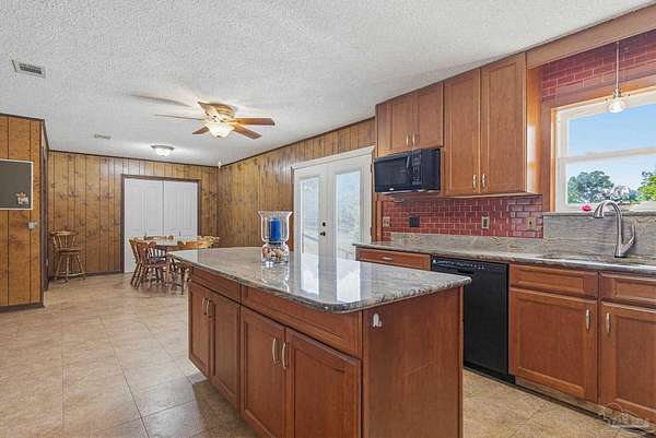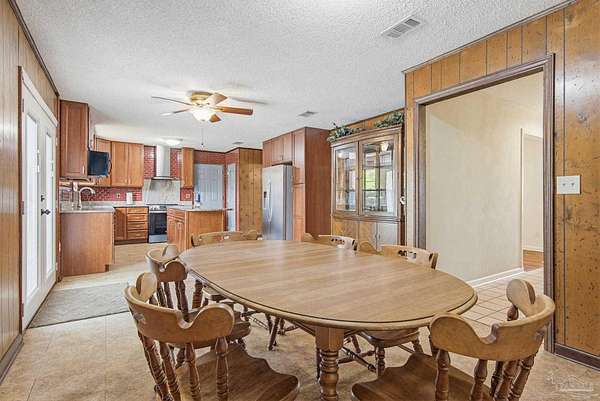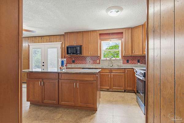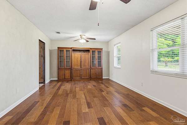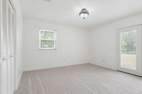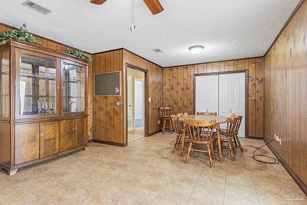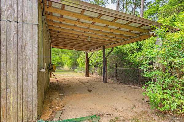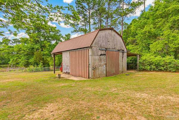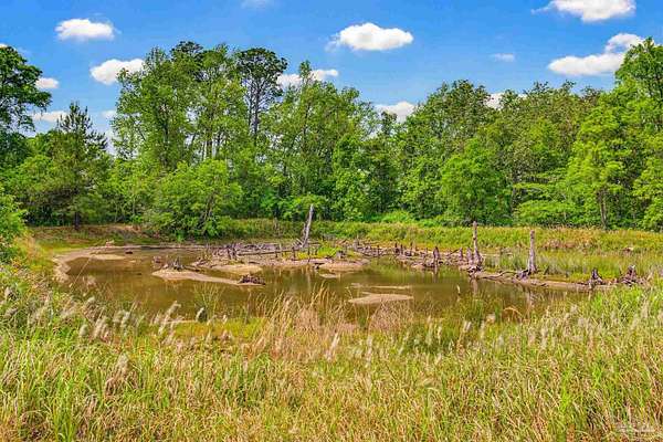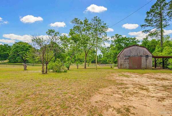 From its charming exterior to its peaceful setting, this picturesque 2.36-acre property offers a rare blend of privacy, flexibility, and convenience in the Beulah area, quietly tucked away yet just minutes from shopping, schools, the Navy Federal campus, and Interstate 10. The flat, tree-lined homesite welcomes you with a sense of calm that is increasingly hard to find. With MSTU zoning and ample space to expand, the property lends itself to a variety of uses, whether you are considering a private retreat, a live-work setup, or future redevelopment. Inside, the remodeled 3-bedroom, 2-bath home is move-in ready and thoughtfully maintained. The spacious main living area, finished with hand-scraped wood laminate flooring, offers flexibility for both formal and casual use. The kitchen has been updated with granite countertops, stainless steel appliances, an island for prep and storage, and oak shaker-style cabinetry. A mix of subway tile and granite backsplash adds texture, while the eat-in area overlooks the natural backyard setting. The main bedroom includes a private en suite bath with an oversized tiled shower and a vanity with generous storage. Two additional bedrooms share a centrally located full bath with a clean, modern feel. Outdoors, the fully fenced yard, with a small pond area, opens to the surrounding acreage, offering room to create a range of possibilities, from outdoor living spaces to gardens or recreational use. A one-car garage and a detached workshop with two covered carport areas provide added versatility for storage, projects, or flexible use. With its combination of space, updates, and zoning, this property presents a wide range of opportunities to suit your needs. Additional land available, contact listing agent for more details. Solar system paid in fill.